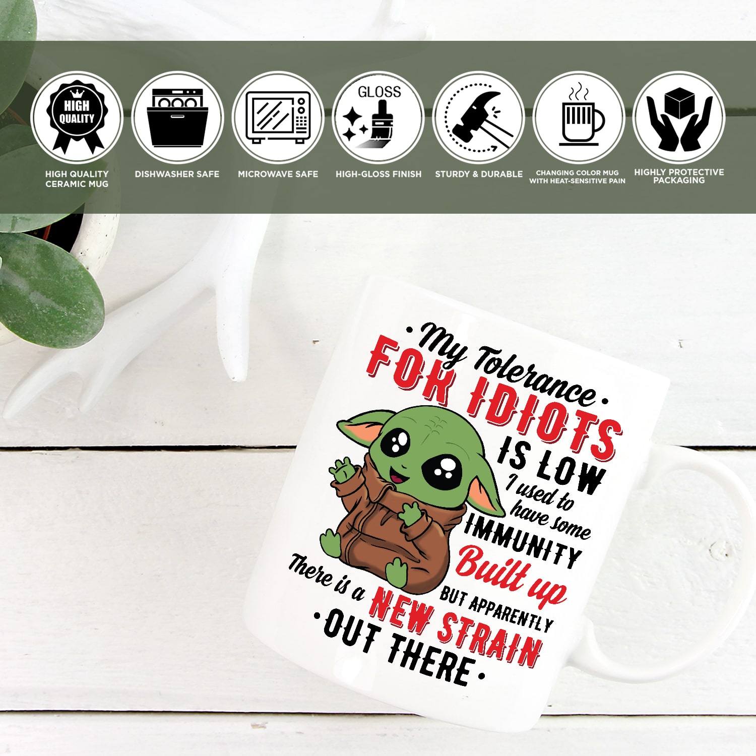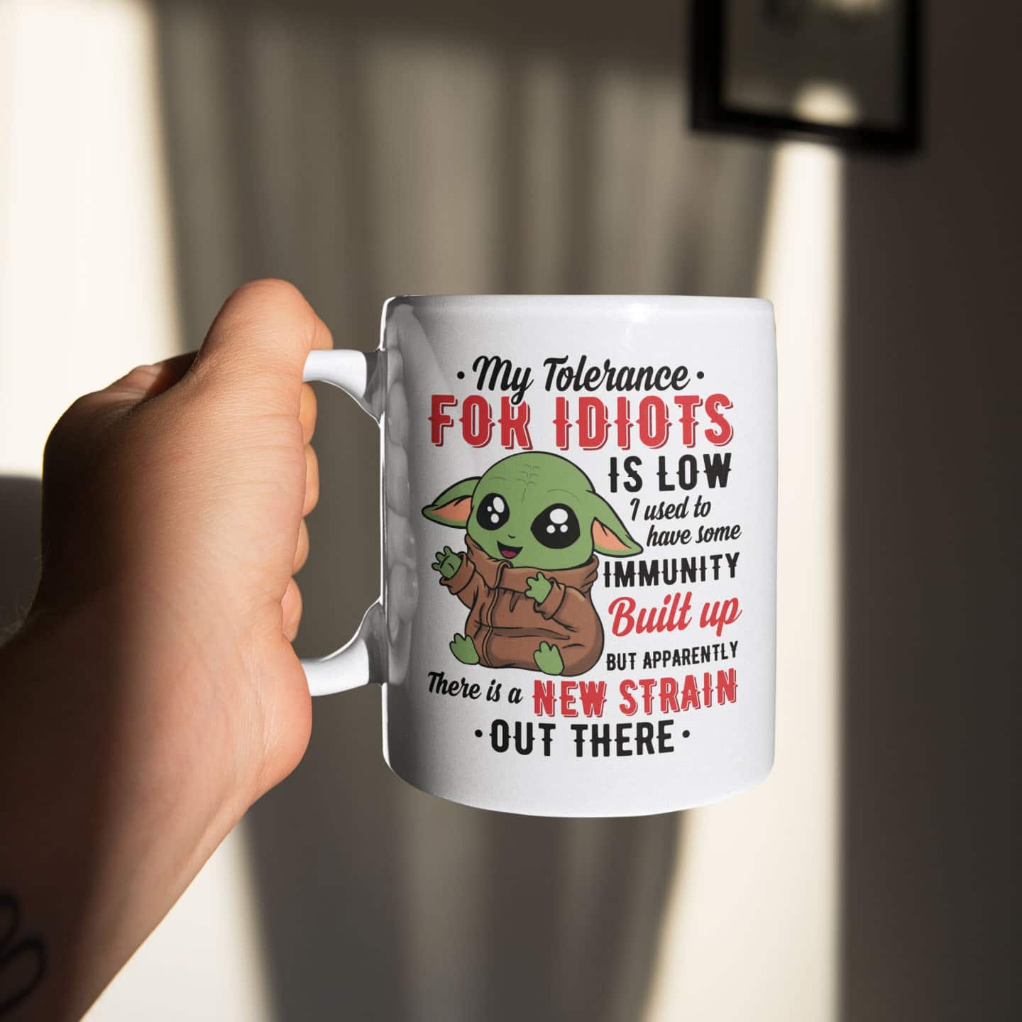 Let’s Shop My Tolerance For Idiots Is Low I Used To Have Some Immunity Built Up Funny Baby Yoda Ceramic Coffee Mug!