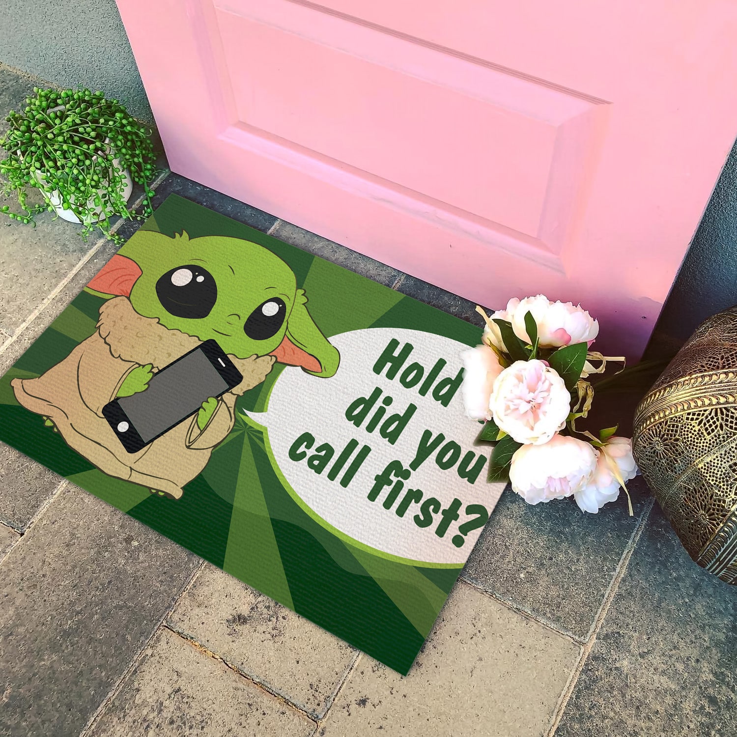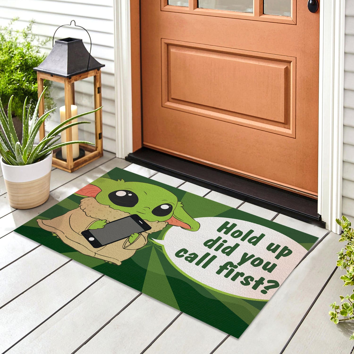 Are you spending too much time to find creative merchandise for you or suitable & special gifts for your mommy, your daddy, your son, your daughter, your children, your friends or someone you love? The struggle is over because we have various Yoda Mat, Baby Yoda Outdoor Doormats, Baby Yoda Doormat, Funny Door Mat, Funny Doormat, Funny Welcome Mats, Door Mats Outdoor Funny, Funny Mats for Front Door, Hold up Did You Call First Door Mat, Hold up Did You Call First Welcome Mat which will make perfect presents for your beloveds. In order to make your present stand out, we have created lots of unique and awesome customized photo gifts & personalized designs.