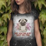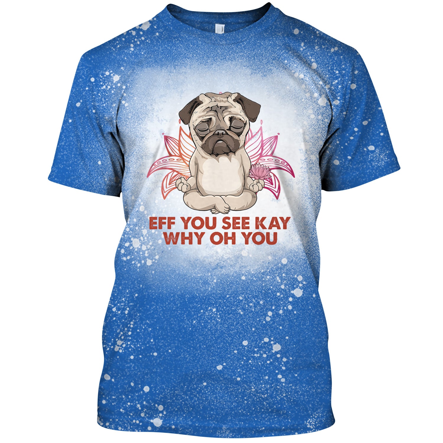 Eff You See Kay Why Oh You Pug Sublimation Bleached T-Shirt – Funny Pug Meditation Yoga Bleach Shirt