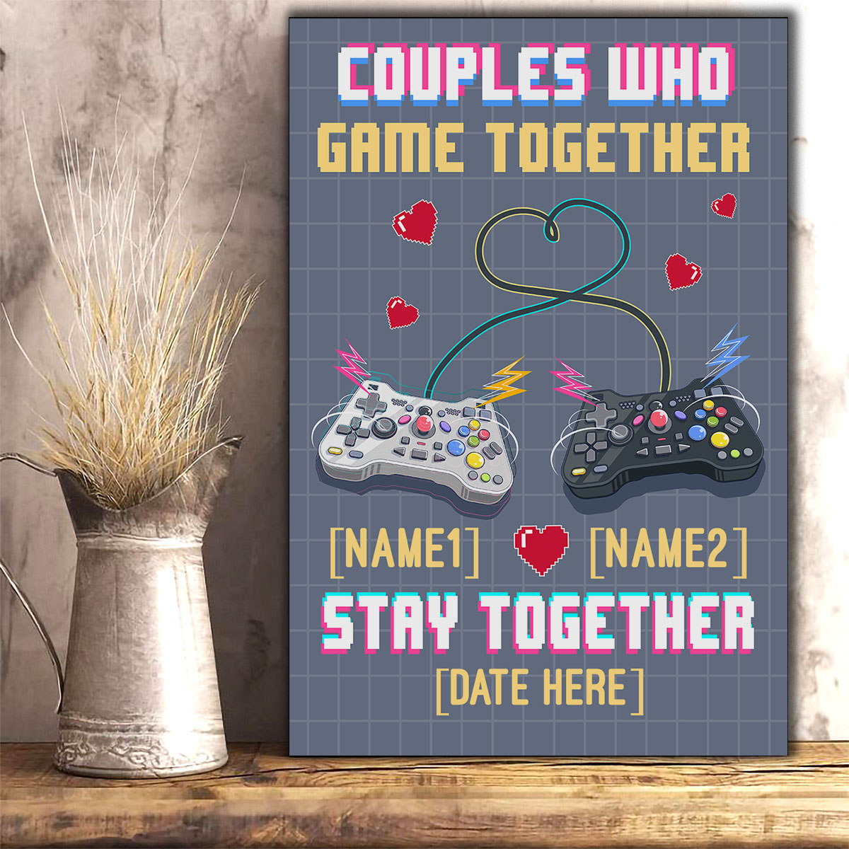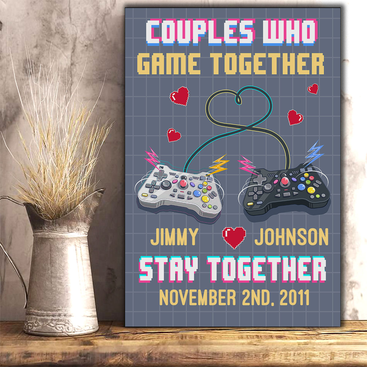 Let’s Shop Personalized Couples Who Game Together Stay Together Funny Gamer Couple Framed Canvas Prints – Unframed Poster!