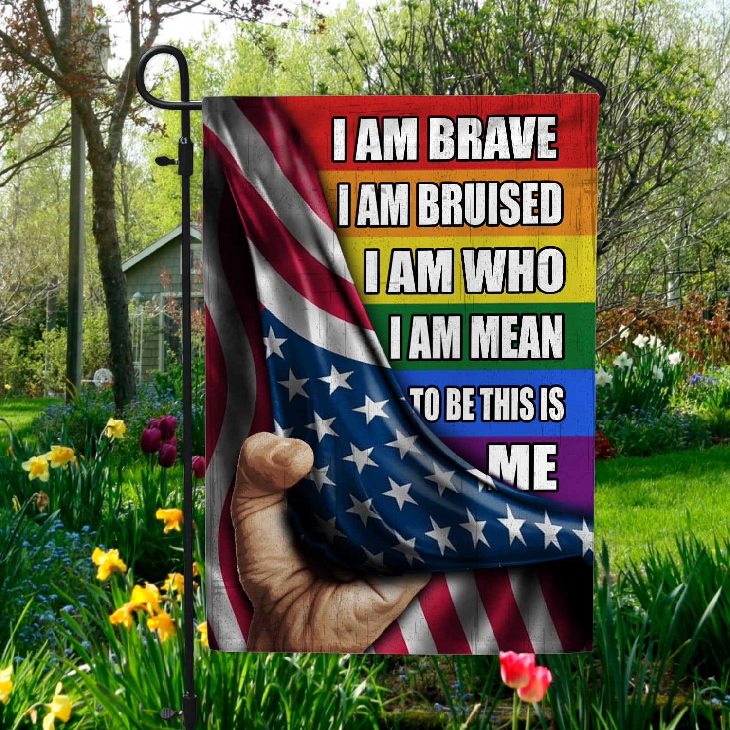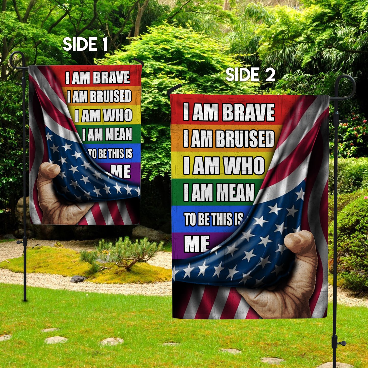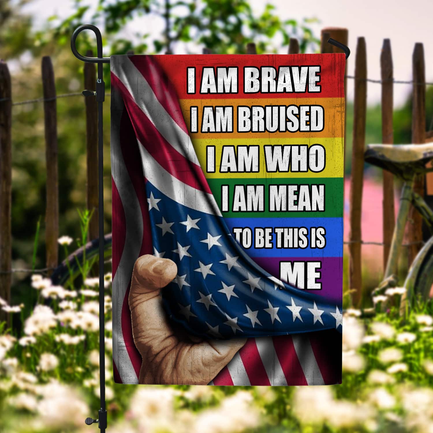 Let’s Shop I Am Brave I Am Bruised I Am Who I Am Mean to Be Indoor Outdoor Flag – Garden Flag – Wall Flag!