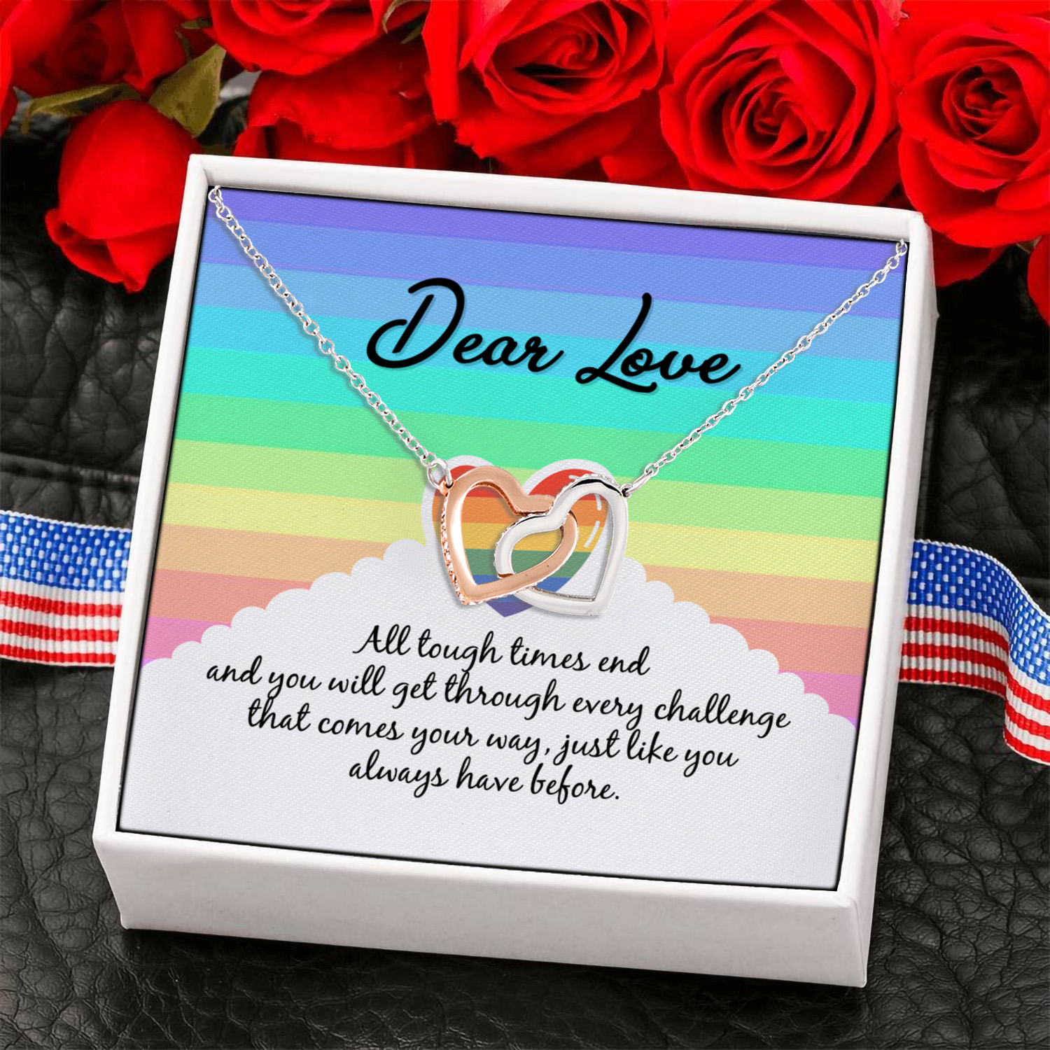Let’s Shop Dear Love All Tough Times End You Will Get Through Challenge LGBT Interlocking Hearts Pendant Necklace!