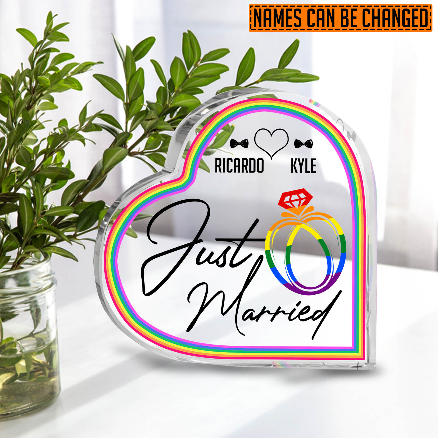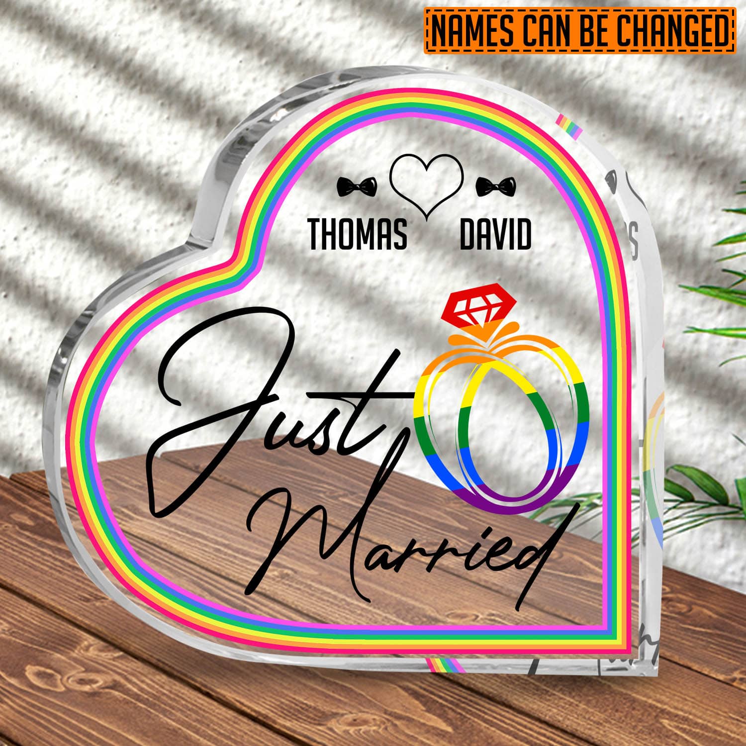 Let’s Shop Personalized LGBT Wedding Just Married Heart Acrylic Plaque – Gay Wedding Two Husbands Gift!