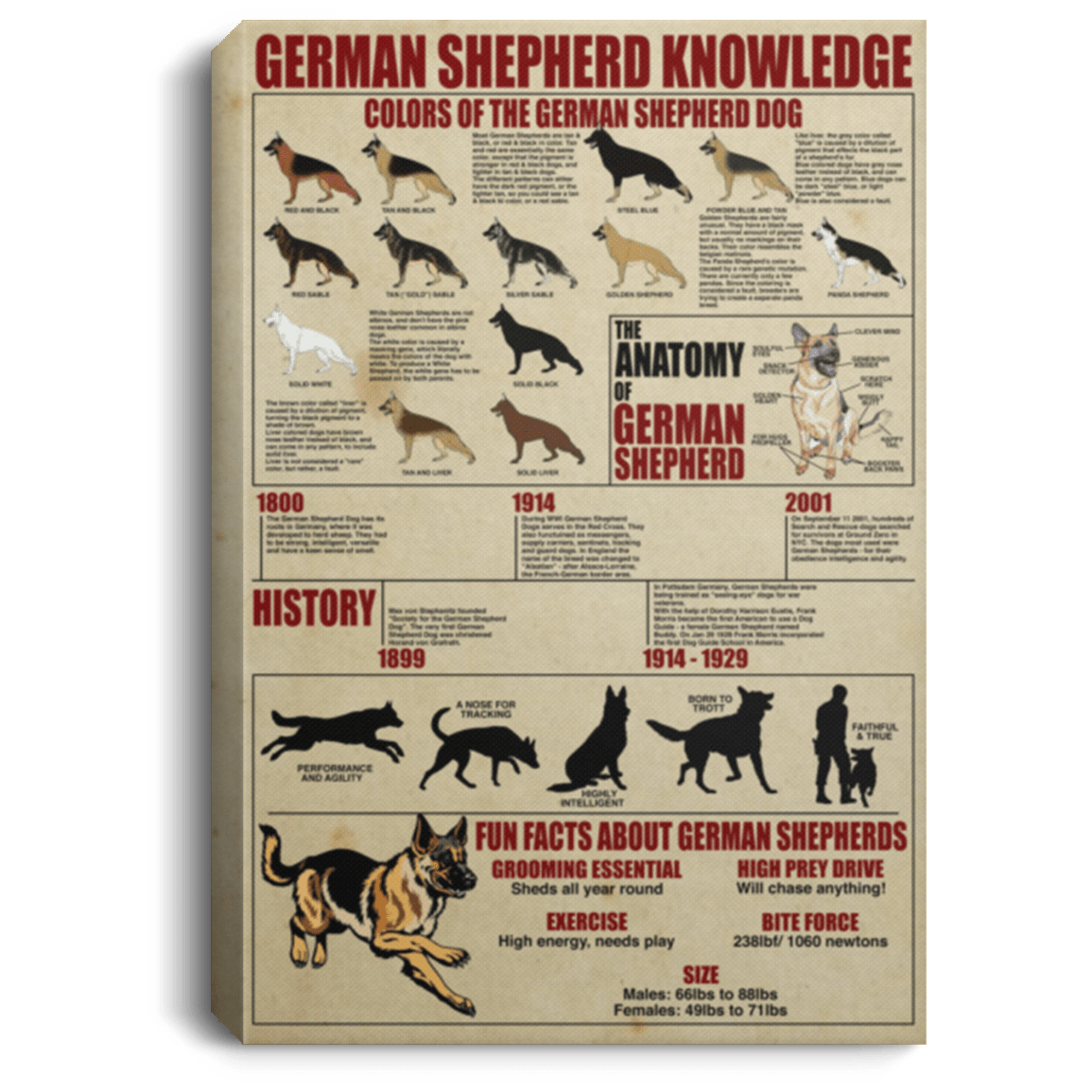 German Shepherd Knowledge Gallery Wrapped Framed Canvas Prints – Unframed Poster – Home Decor Wall Art