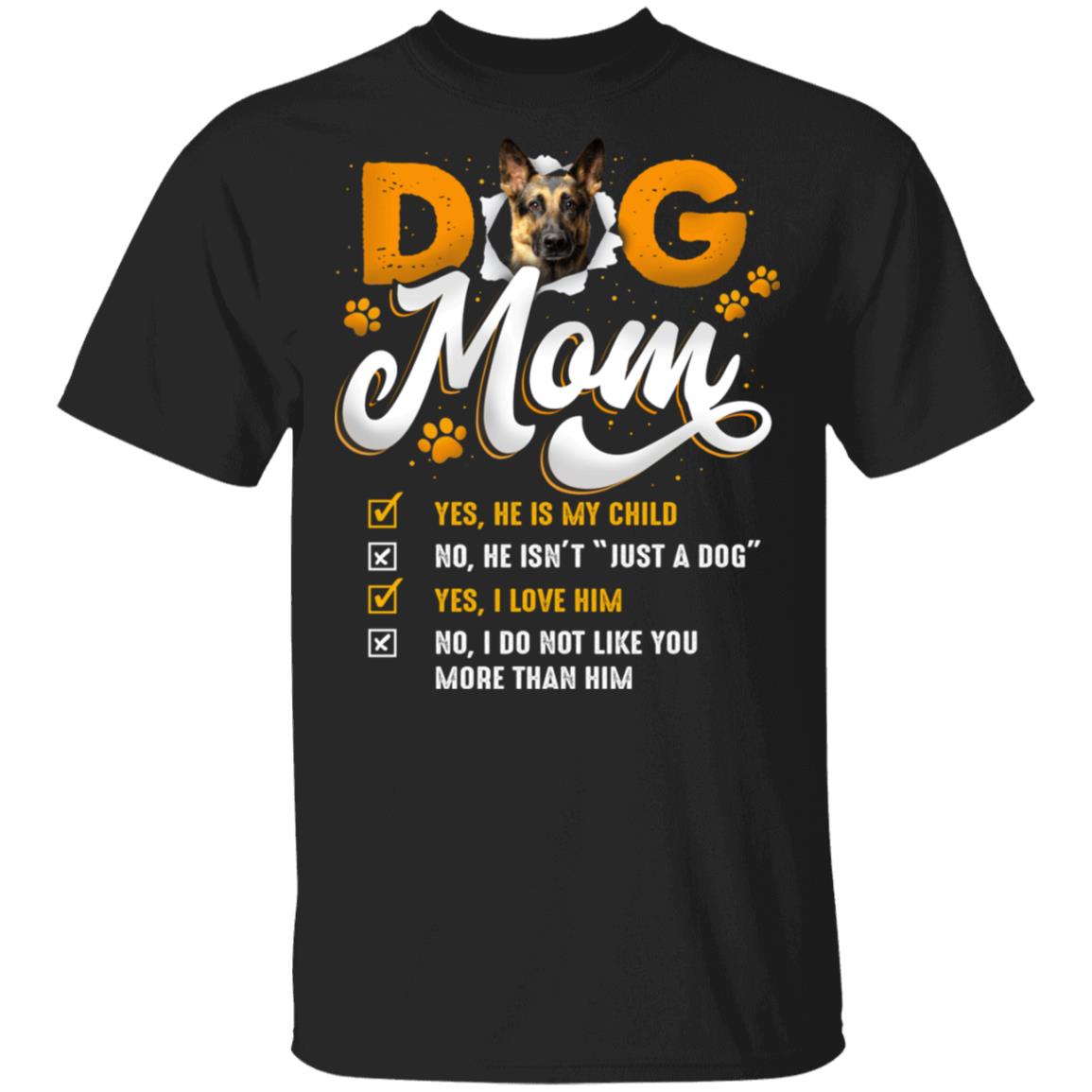 German Shepherd Dog Mom Yes He Is My Child No He Isn't Just A Dog Yes I Love Him T-Shirt