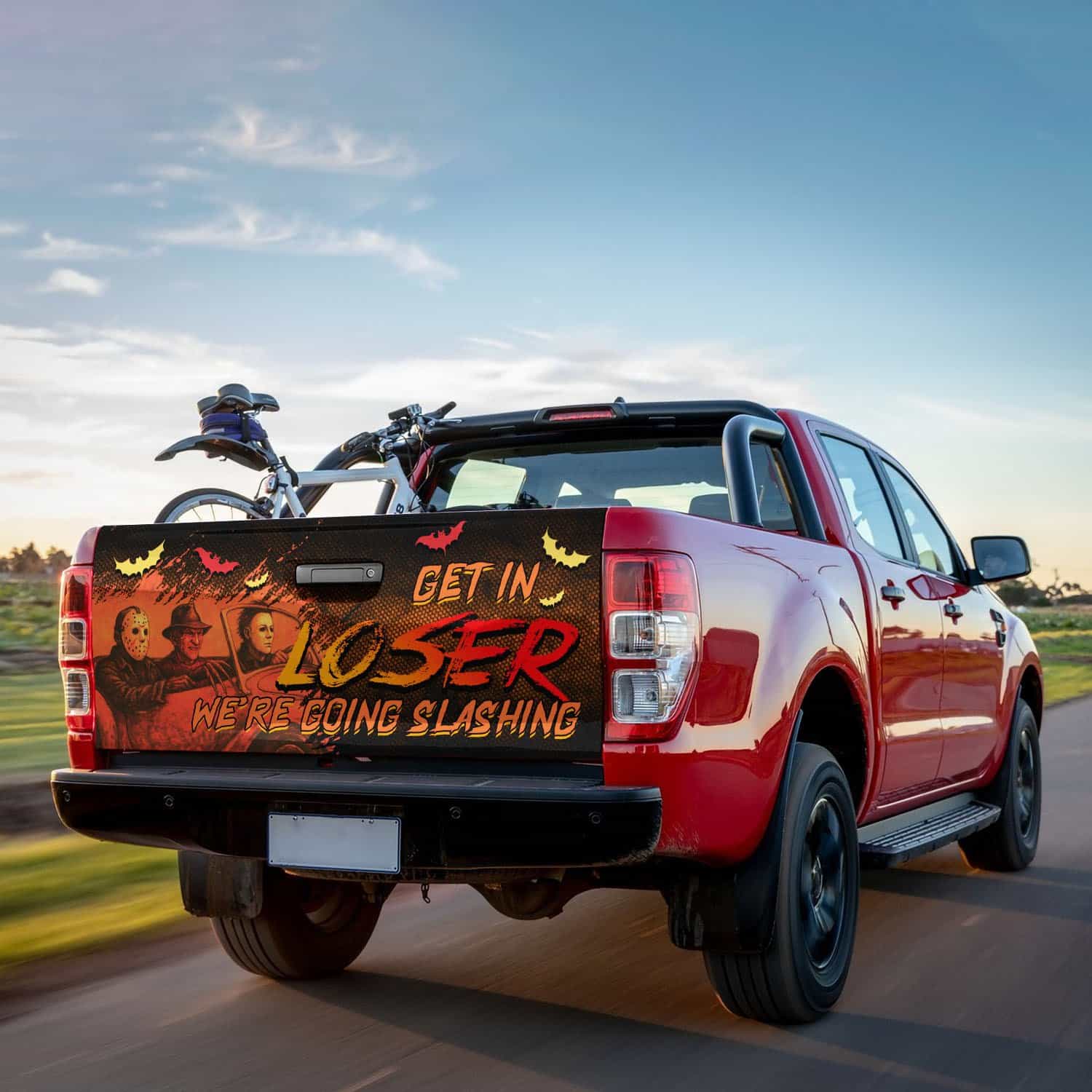 Let’s Shop Get In Loser We’re Going Slashing Funny Horror Halloween Characters Truck Tailgate Decal Sticker Wrap!