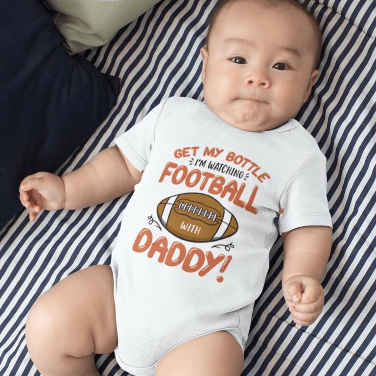 Let’s Shop Get My Bottle I’m Watching Football With Daddy Baby Onesie – Baby Infant Bodysuit!