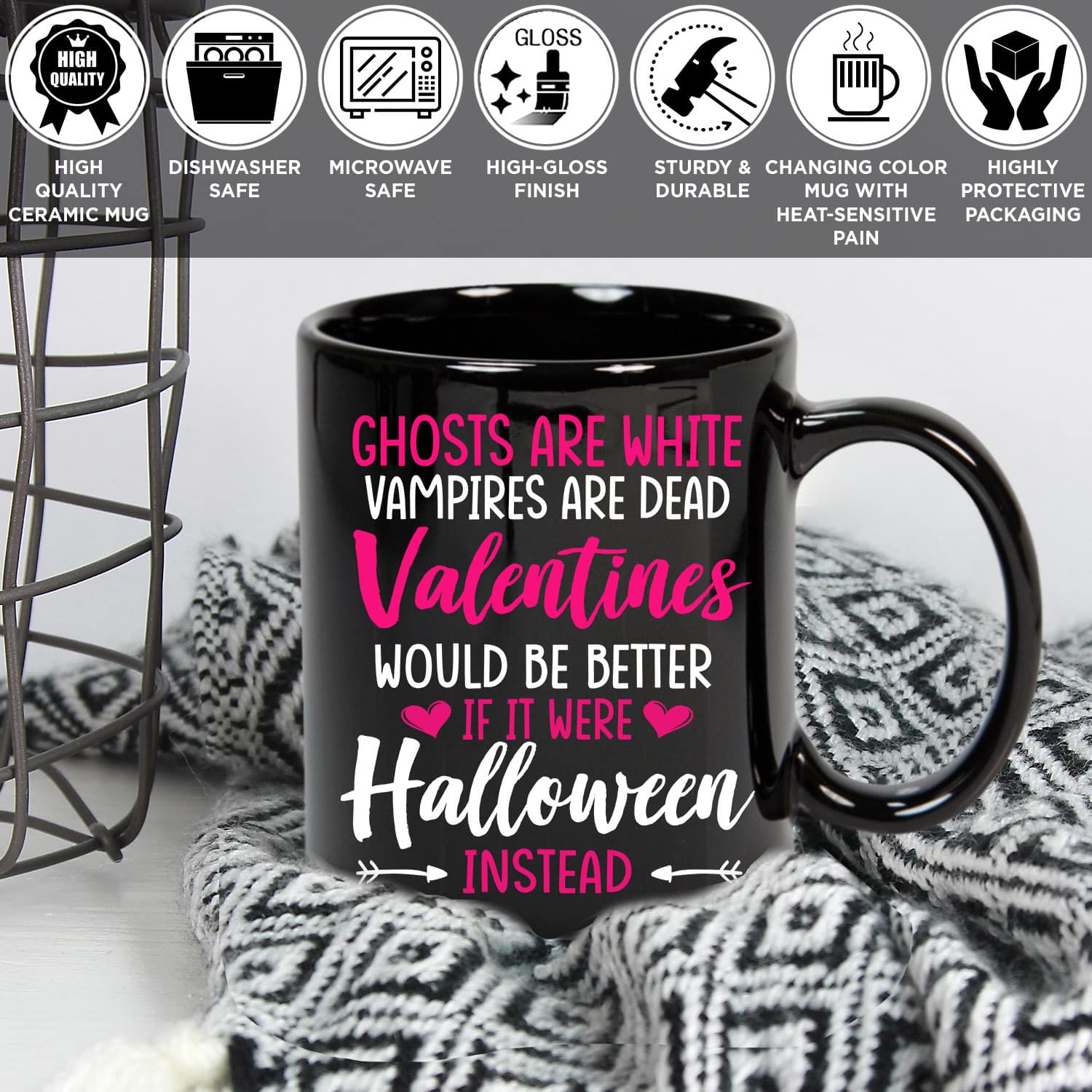 Are you spending too much time to find creative merchandise for you or suitable & special gifts for your mommy, your daddy, your son, your daughter, your children, your friends or someone you love? The struggle is over because we have various Valentines Mug, Valentines Gifts, Valentines Halloween Mug, Ghost Are White Mug, Funny Valentines Mug, Funny Halloween SMughirt, Ghost Vampires Valentines Mug, Halloween Mug which will make perfect presents for your beloveds. In order to make your present stand out, we have created lots of unique and awesome customized photo gifts & personalized designs.