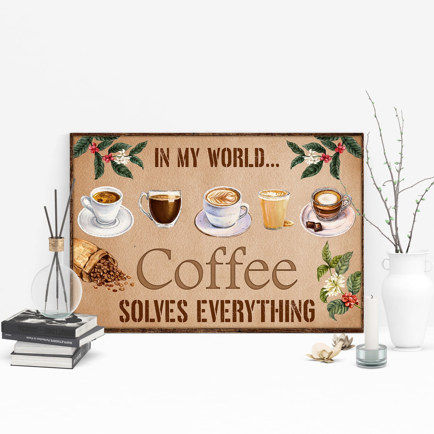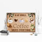Let’s Shop In My World Coffee Solves Everything Framed Canvas – Coffee Lovers Unframed Poster!