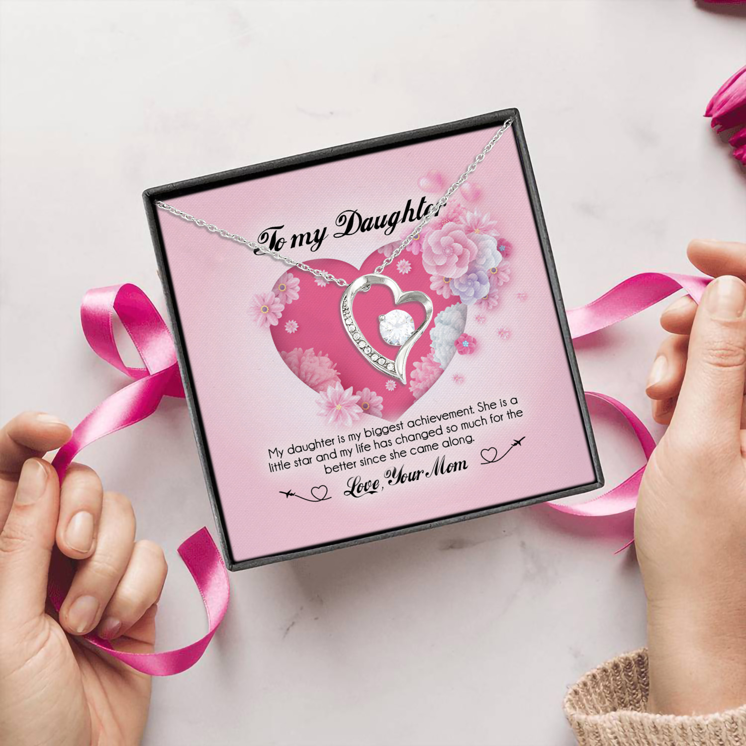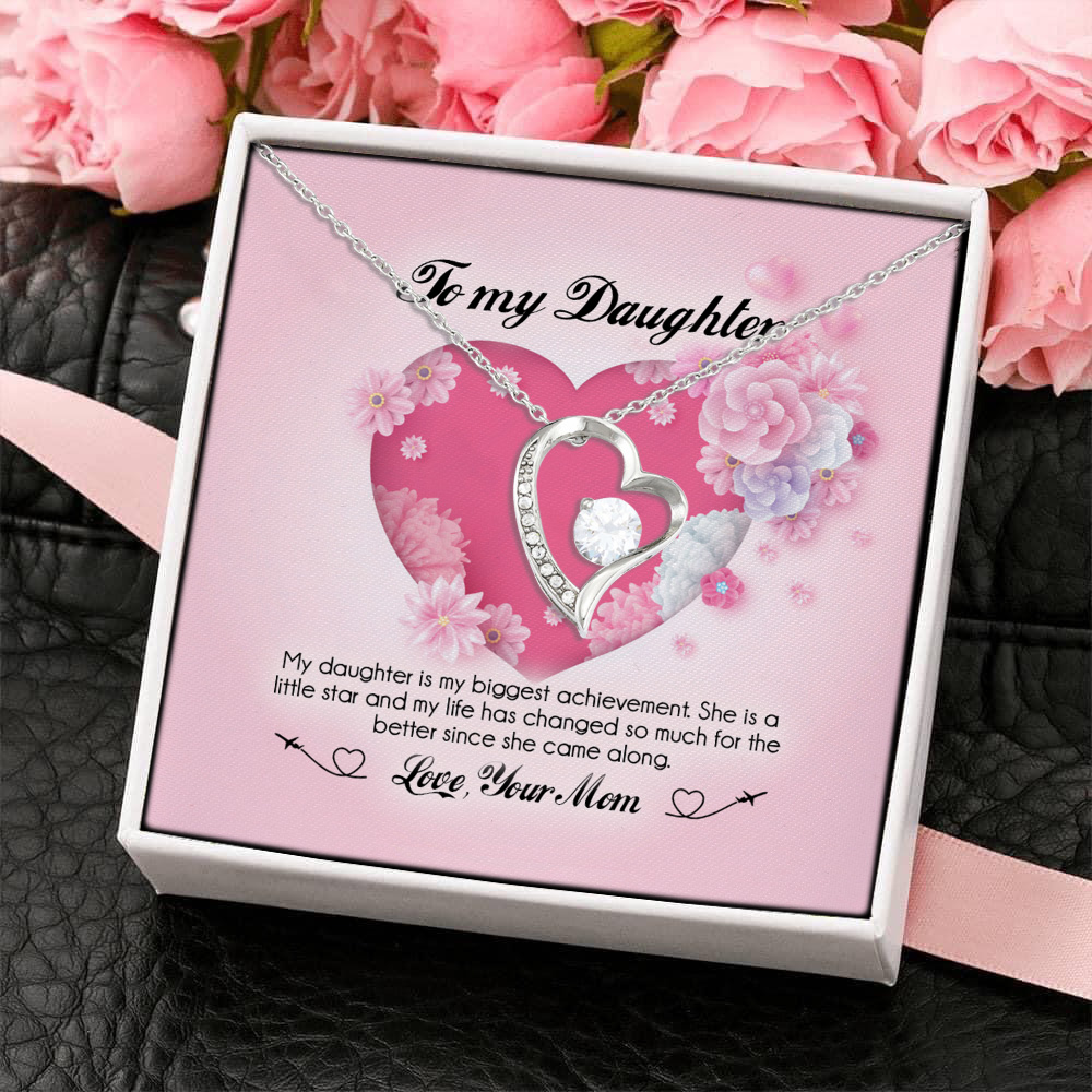Let’s Shop To My Daughter My Daughter Is My Biggest Achievement Love Your Mom Forever Love Heart Pendant Necklace!