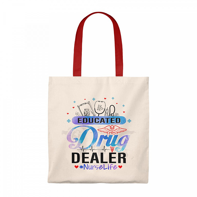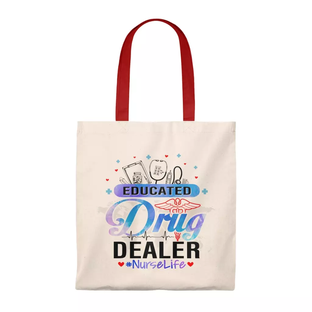 Shop Educated Drug Dealer Tote Bag – Funny Nurse Shoulder Bag – Reusable Grocery Shopping Bag.