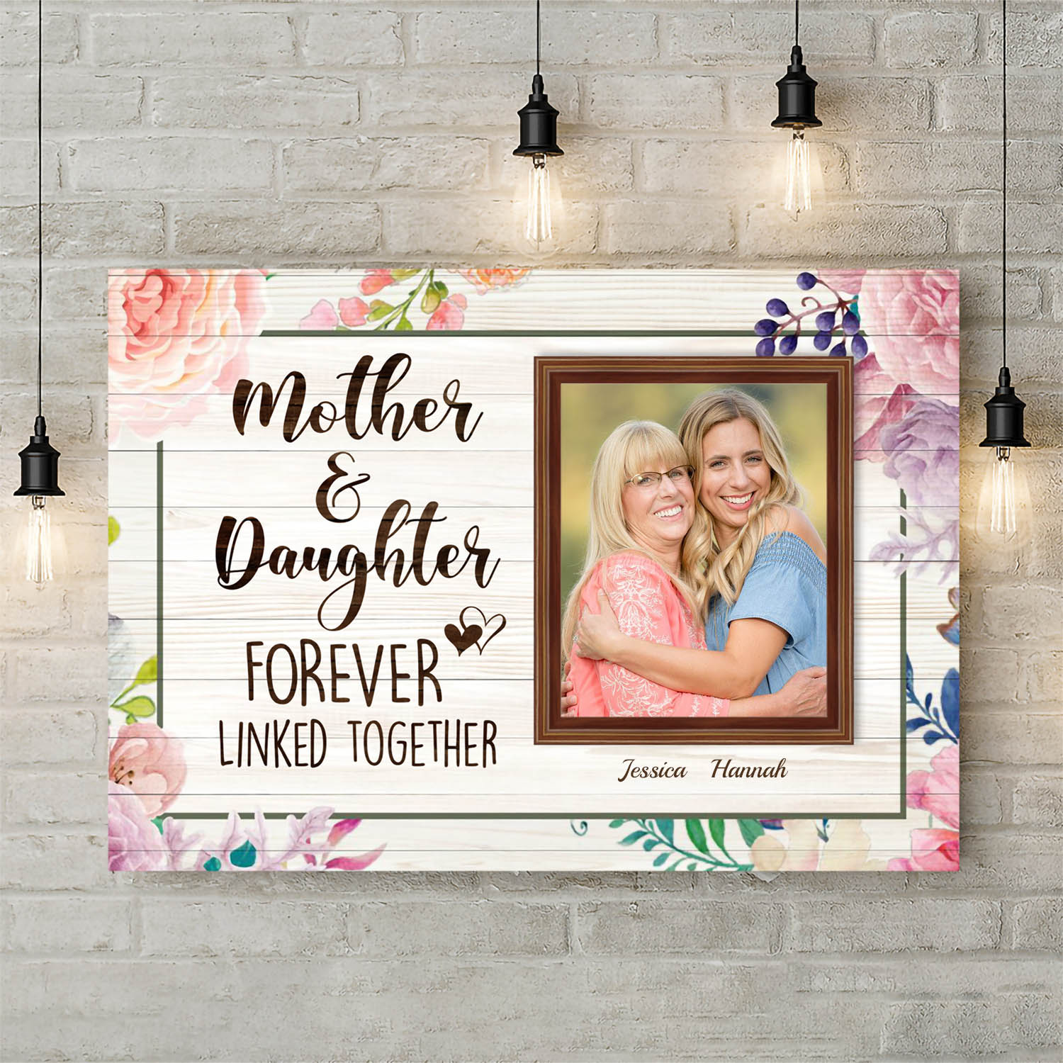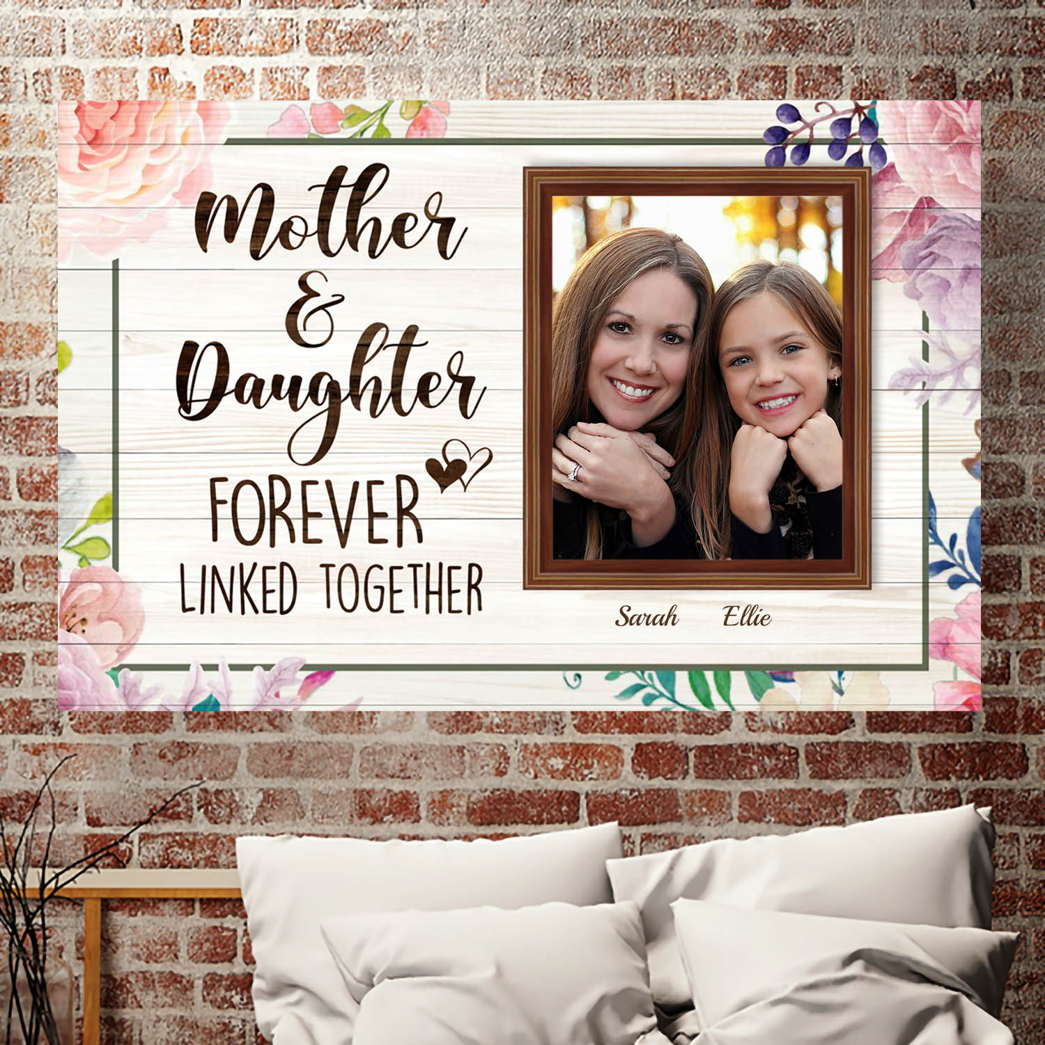 Let’s Shop Custom Photo Mother And Daughter Forever Linked Together Framed Canvas – Unframed Poster – Cute Gift For Mom!