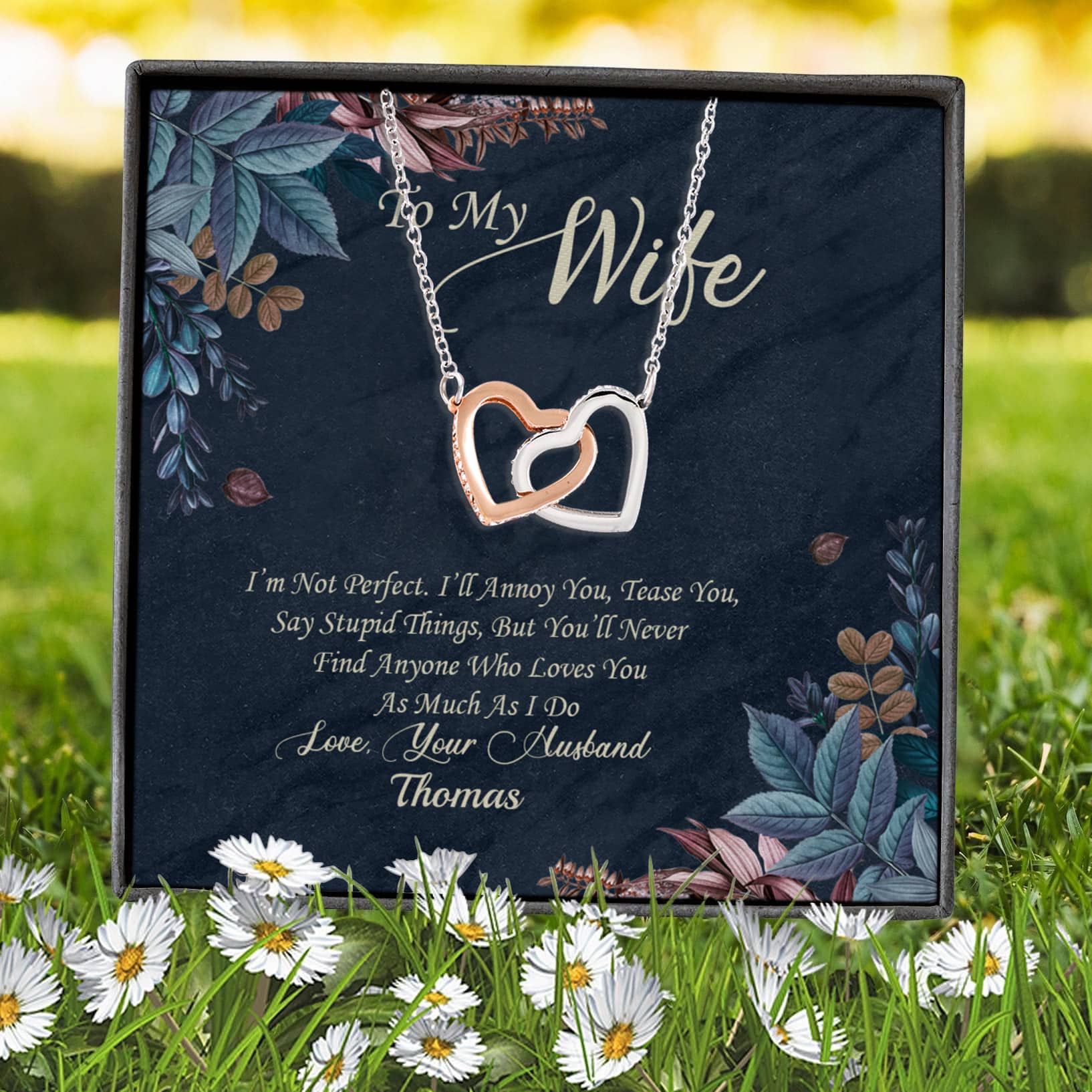 Let’s Shop Personalized To My Wife Im Not Perfect But I Love You Very Much Interlocking Hearts Pendant Necklace – Gift For Wife!
