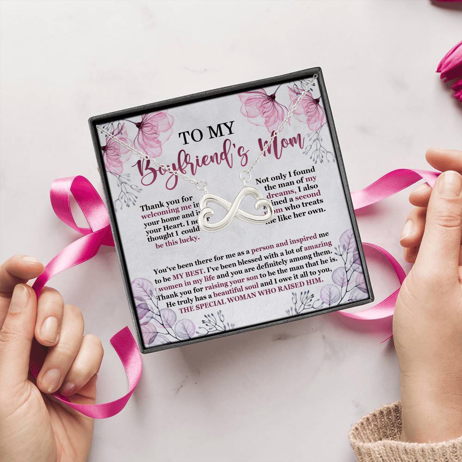 Let’s Shop To My Boyfriend’s Mom Thank You For Welcoming Me Infinity Heart Pendant Necklace!