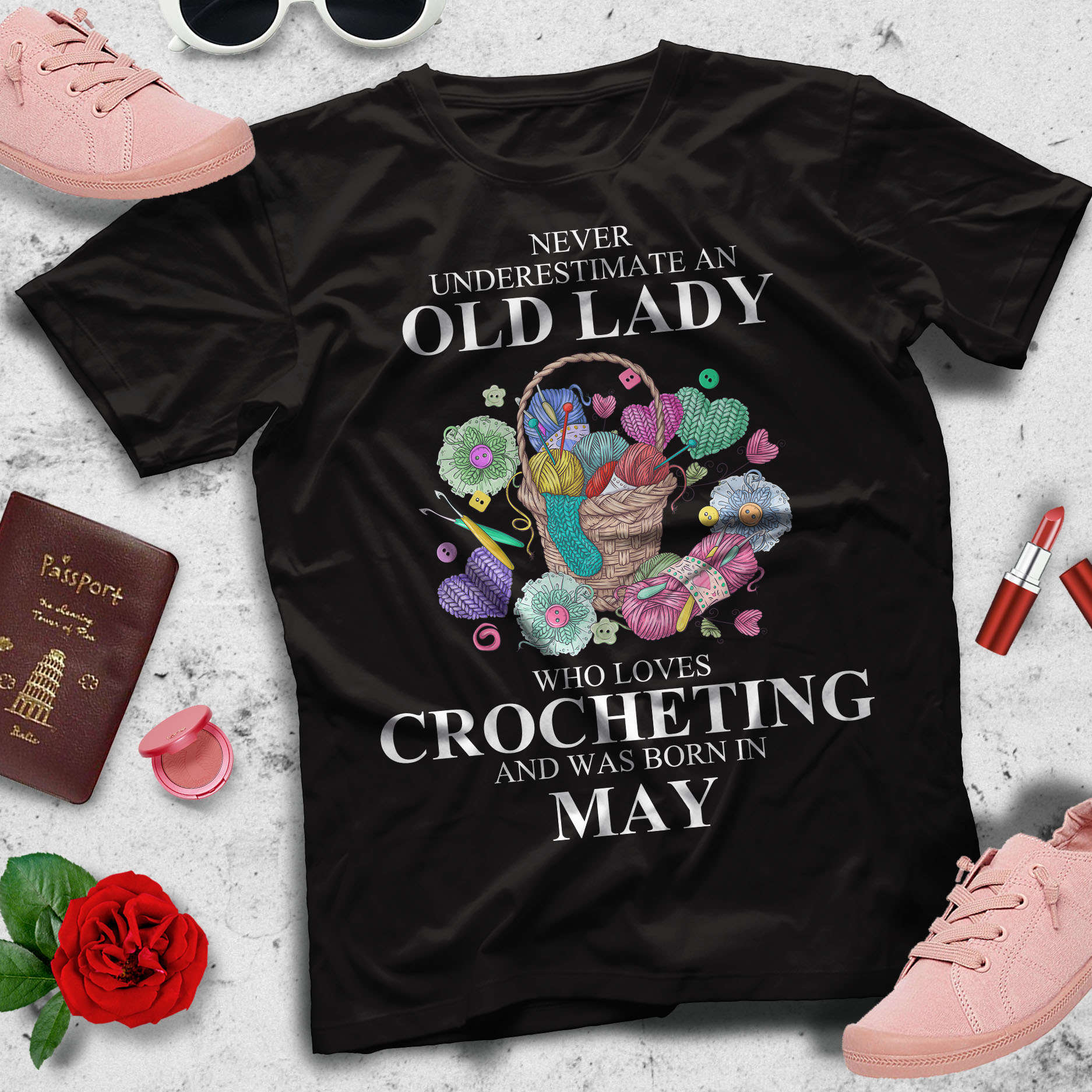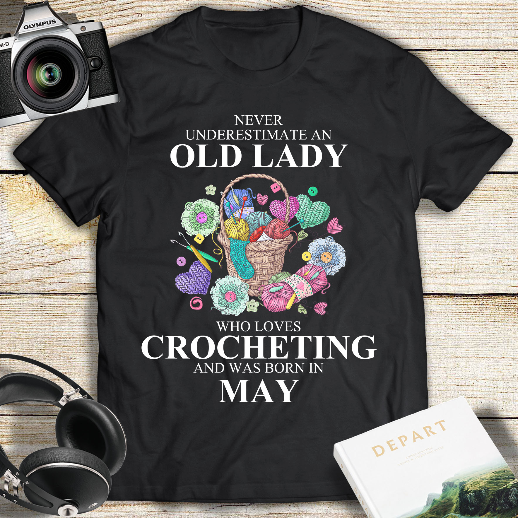 Never Underestimate An Old Lady Who Loves Crocheting and Was Born In May T-Shirt