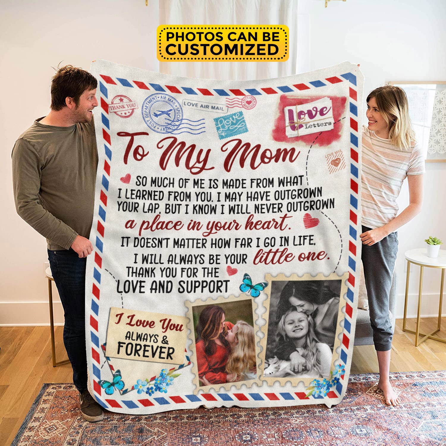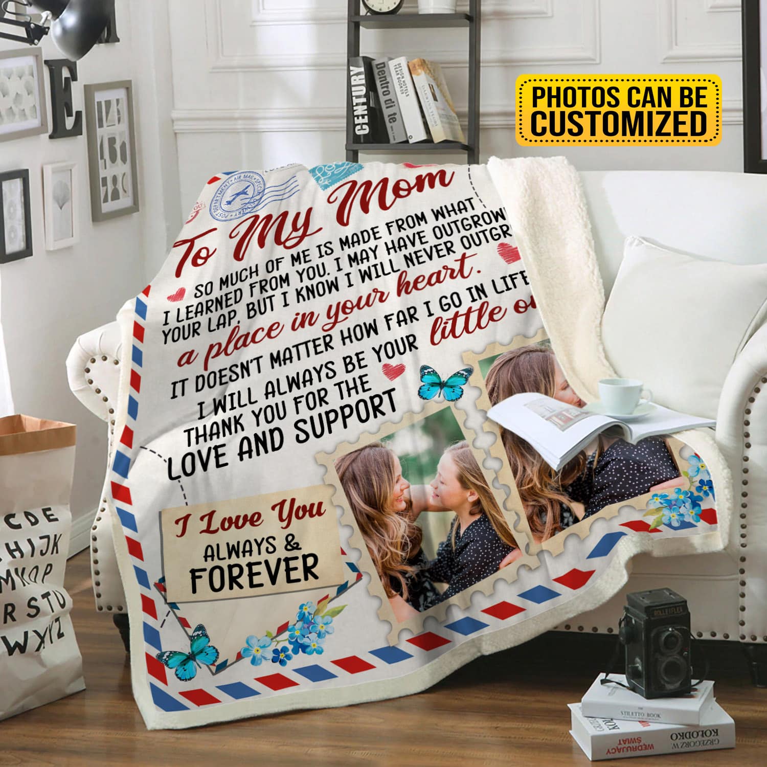 Let’s Shop To My Mom Mail Personalized Throw Blanket – Gifts for Mom from Daughter Son – Custom Photo Mom Air Mail Blanket!