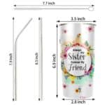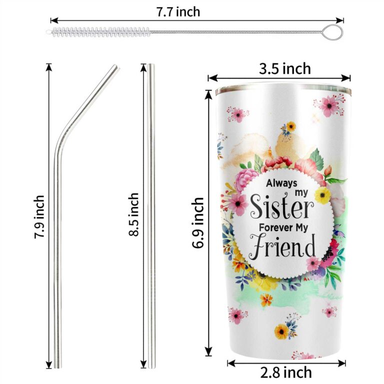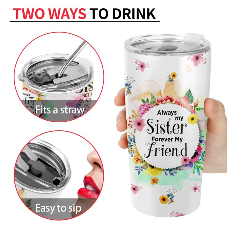 Let’s Shop Gifts for Sister – Always My Sister Forever My Friend Floral Stainless Steel Insulated Tumbler Cup with Lid, Sister Coffee Mug Birthday Gifts!