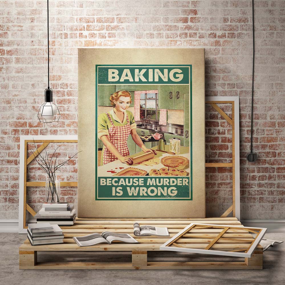 Shop Baking Because Murder Is Wrong Baking Girl Gallery Wrapped Framed Canvas Prints – Unframed Poster – Home Decor.