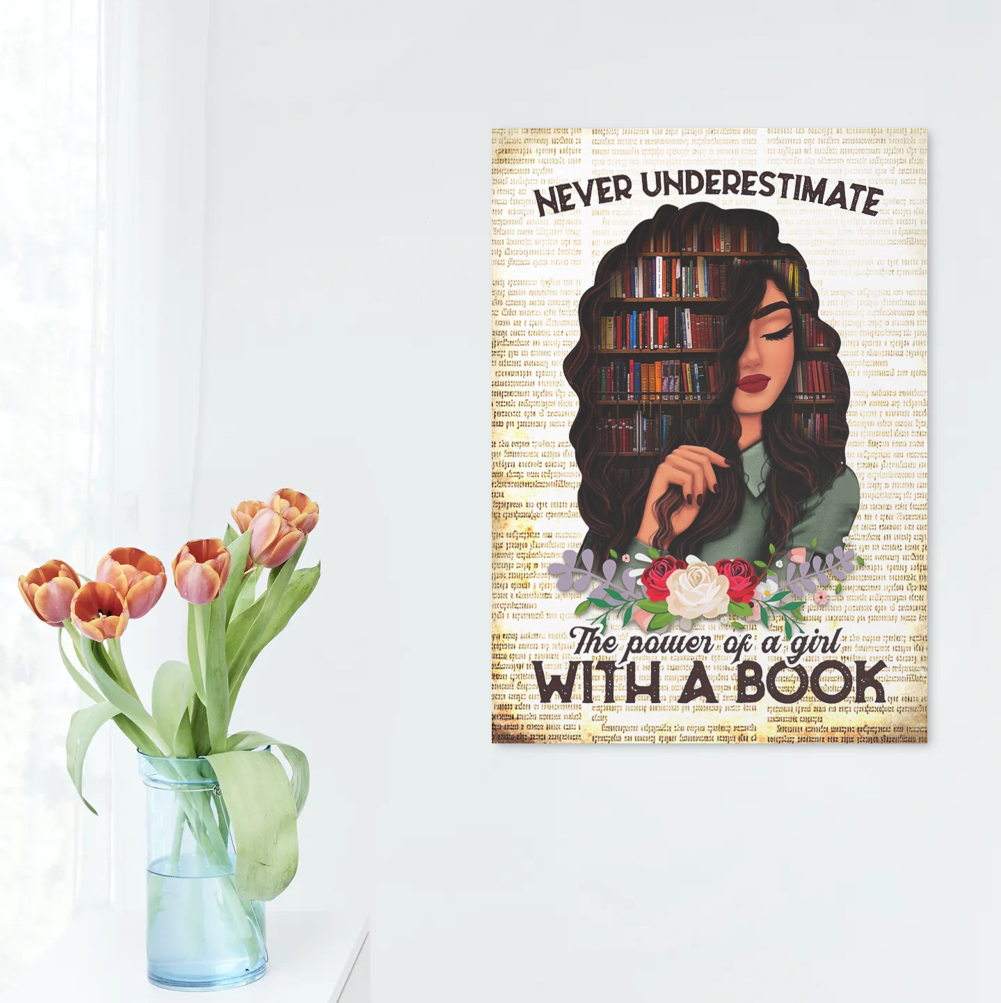 Let’s Shop Vintage Never Underestimate The Power Of A Girl With A Book Framed Canvas Prints – Unframed Poster!
