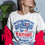 Weekend Forecast Racing With A Chance Of Drinking T-Shirt – V-Neck – Funny Racing Girl Shirt