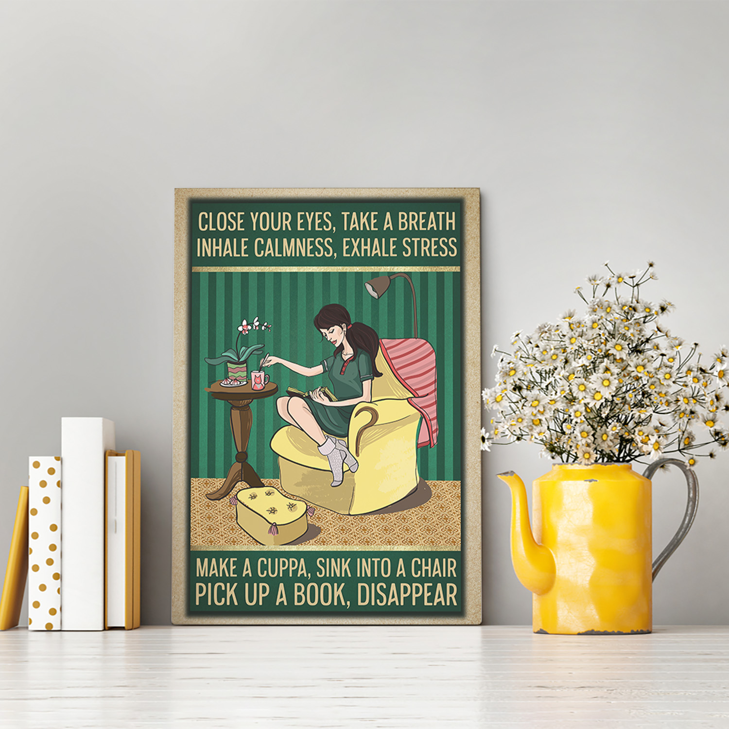 Let’s Shop Close Your Eyes Take A Breath Pick Up A Book Disappear Gallery Wrapped Framed Canvas Prints – Unframed Poster!