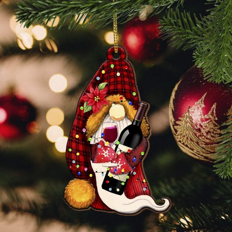 Let’s Shop Gnome Holding Wine Decorative Custom Shaped Wooden Christmas Ornament Keepsake – Holiday Decoration Gifts!