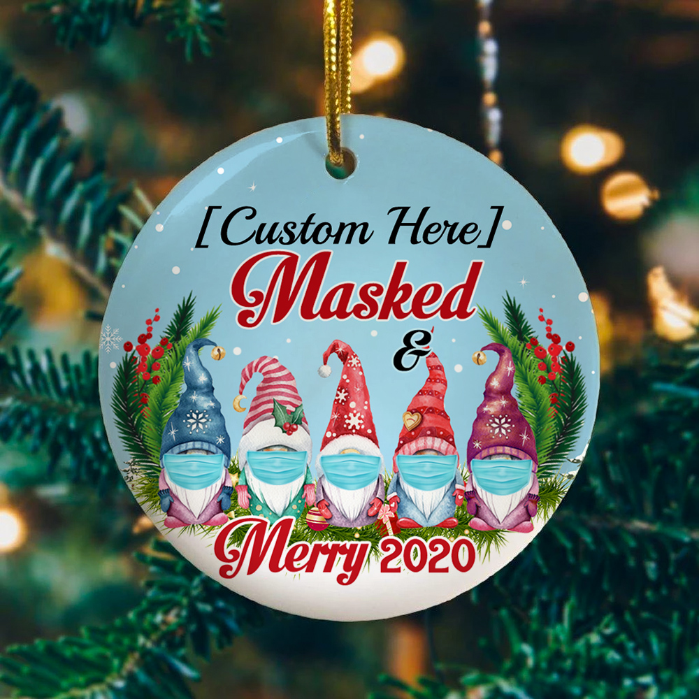 Let’s Shop Personalized 5 Gnomes Family Masked And Merry 2020 Circle Christmas Tree Ornament Keepsake!