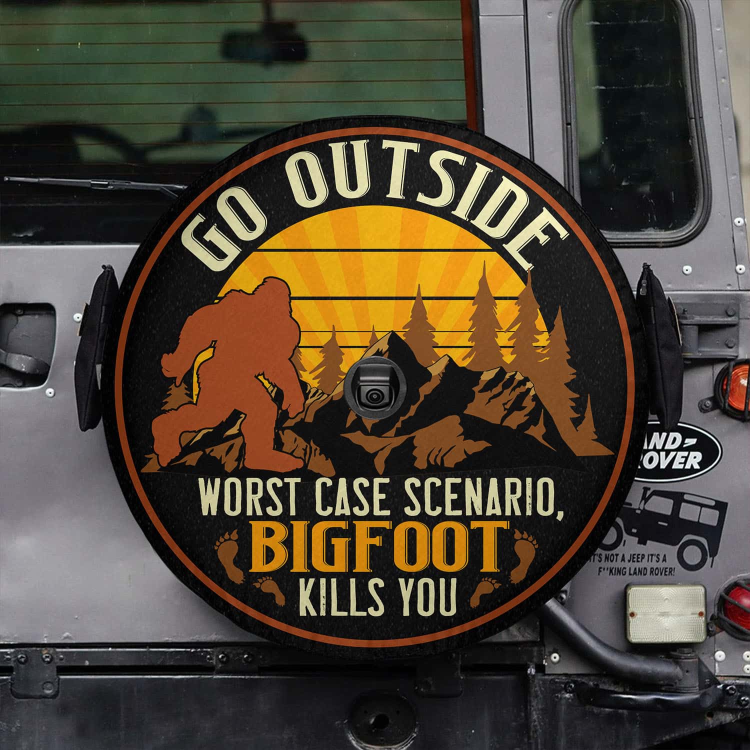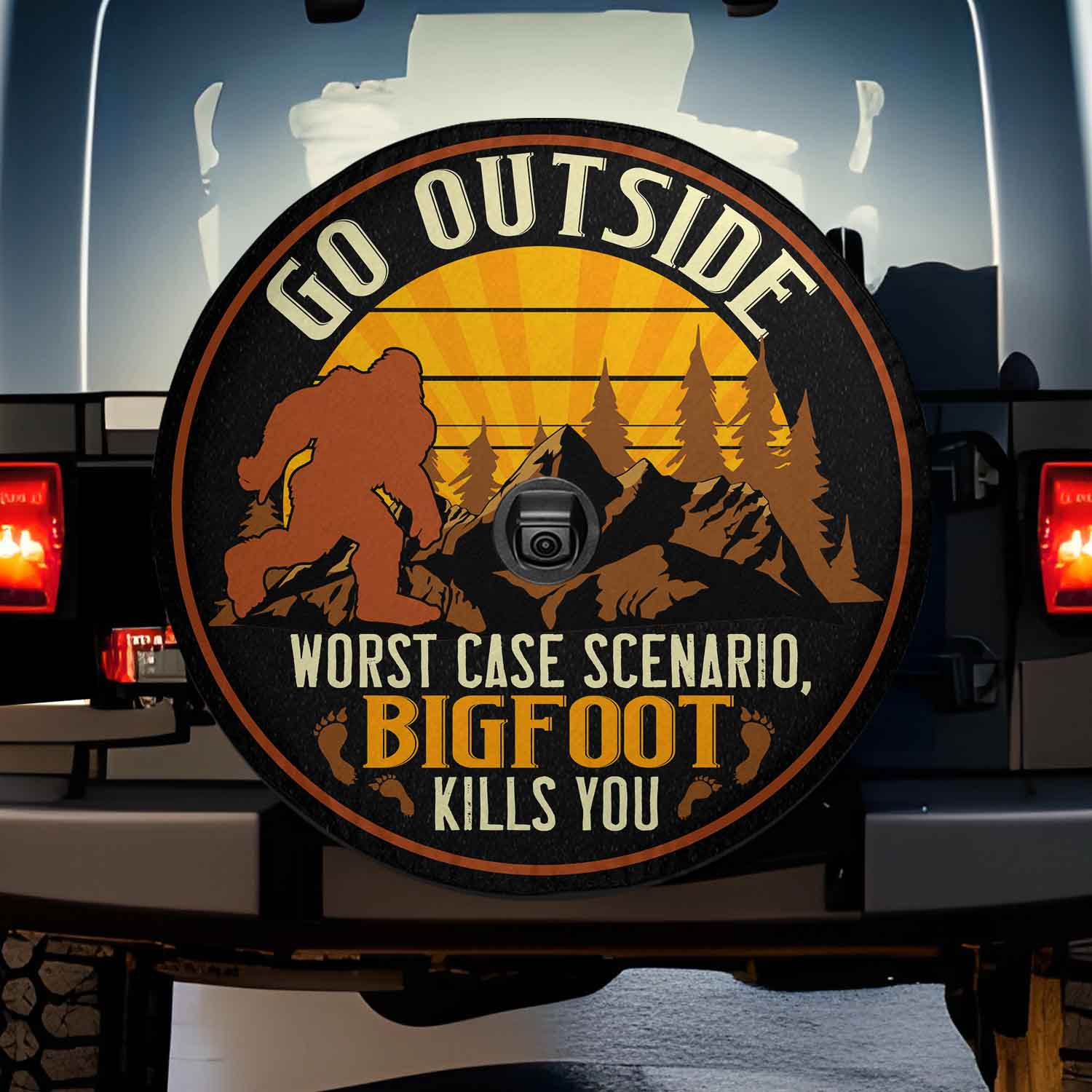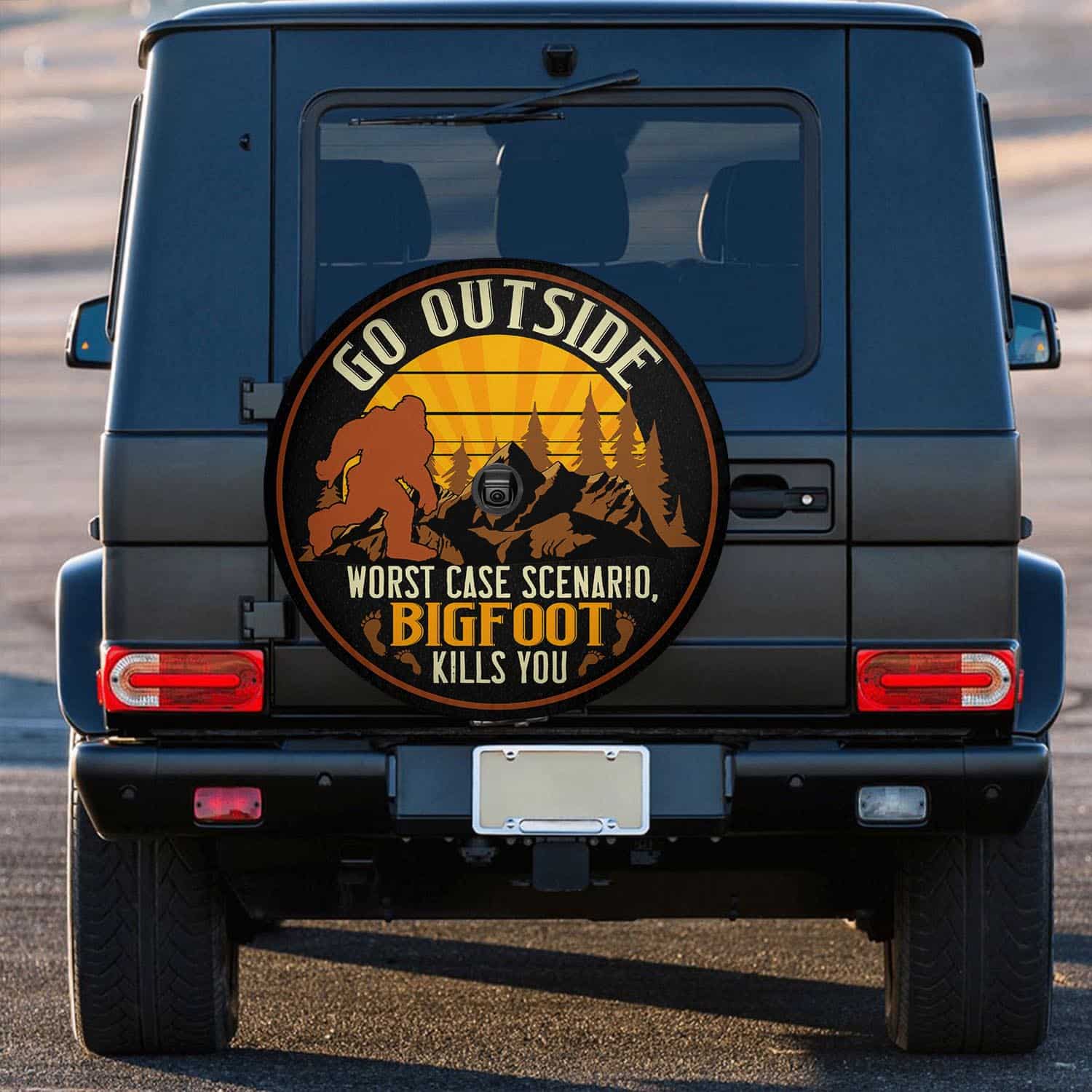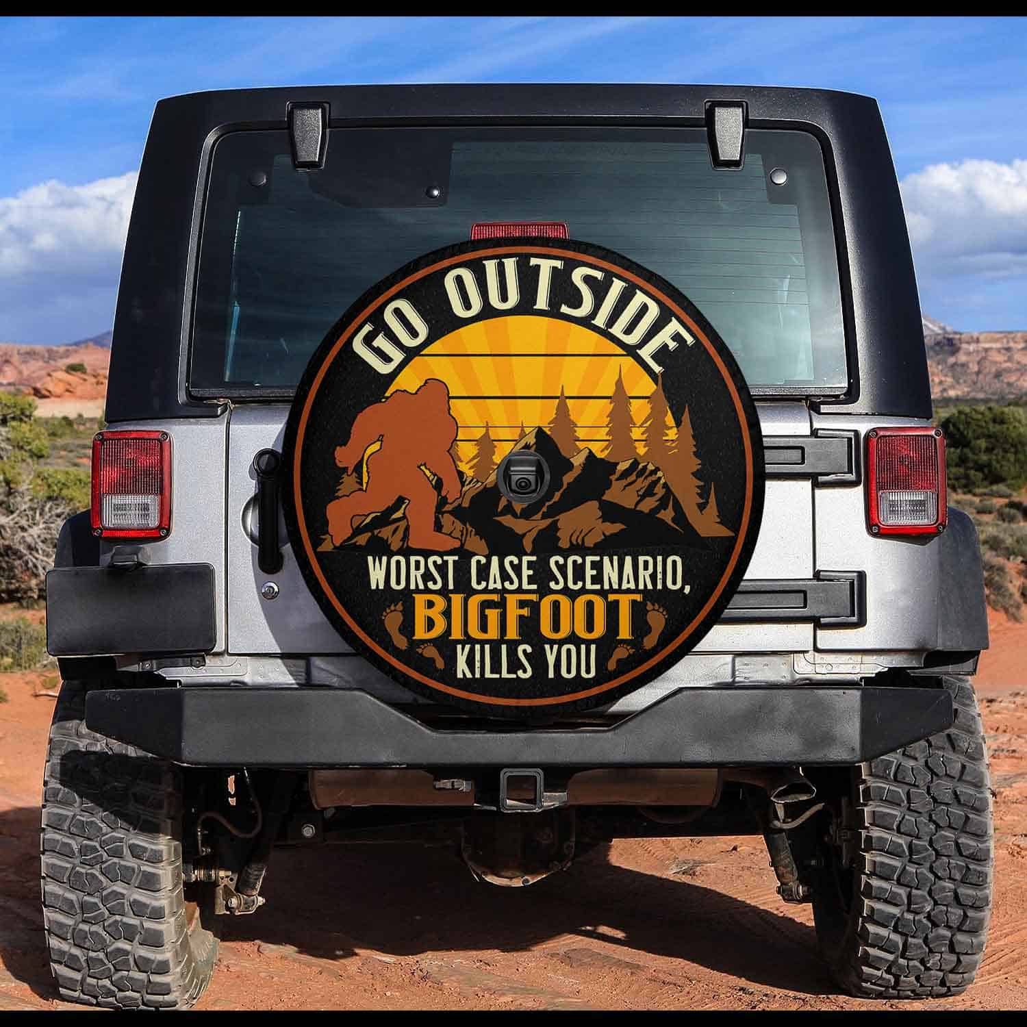 Let’s Shop Go Outside Worst Case Scenario Bigfoot Kills You Funny Spare Tire Cover!