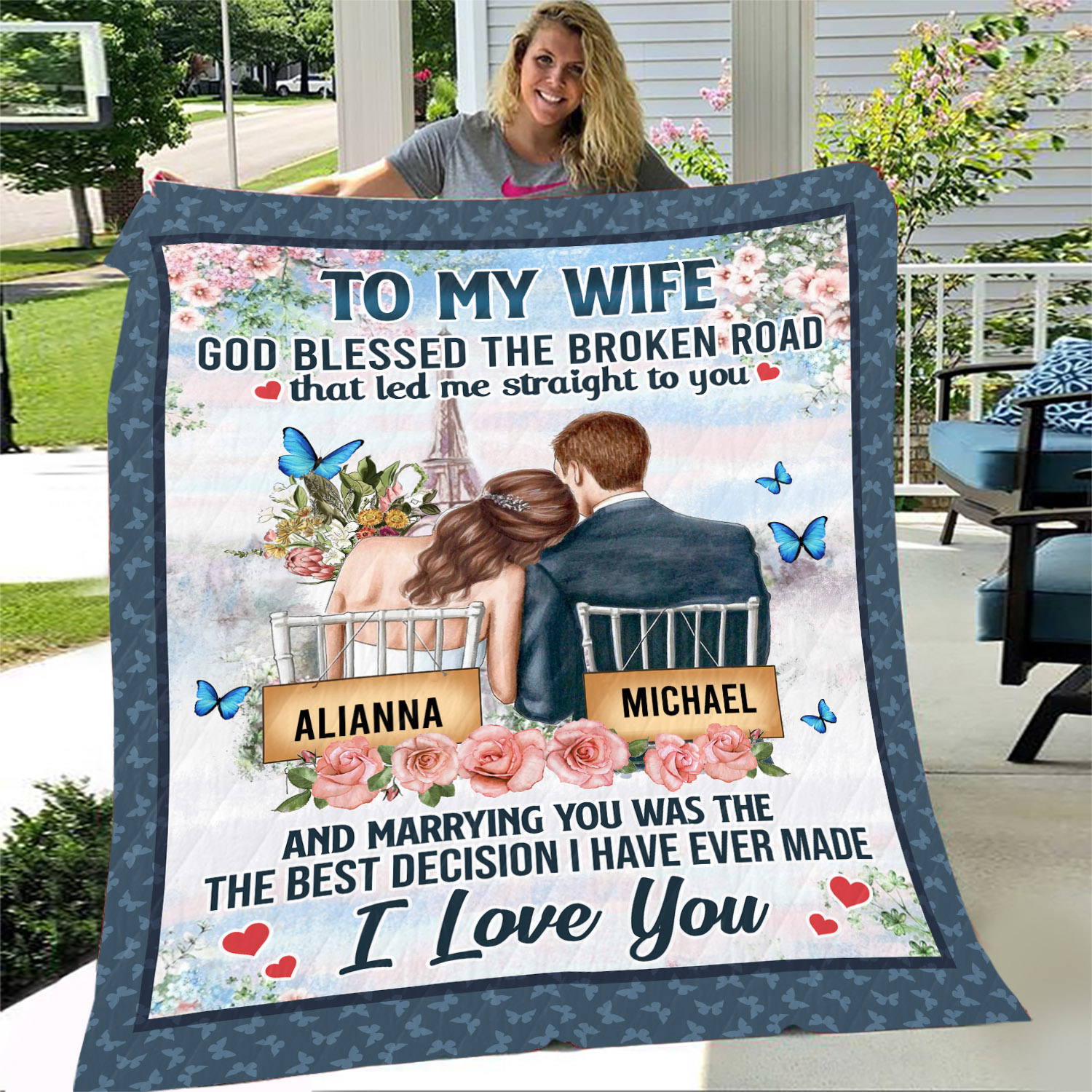 Shop Personalized To My Wife God Blessed The Broken Road Fleece Blanket – Sherpa Blanket – Woven Blanket.