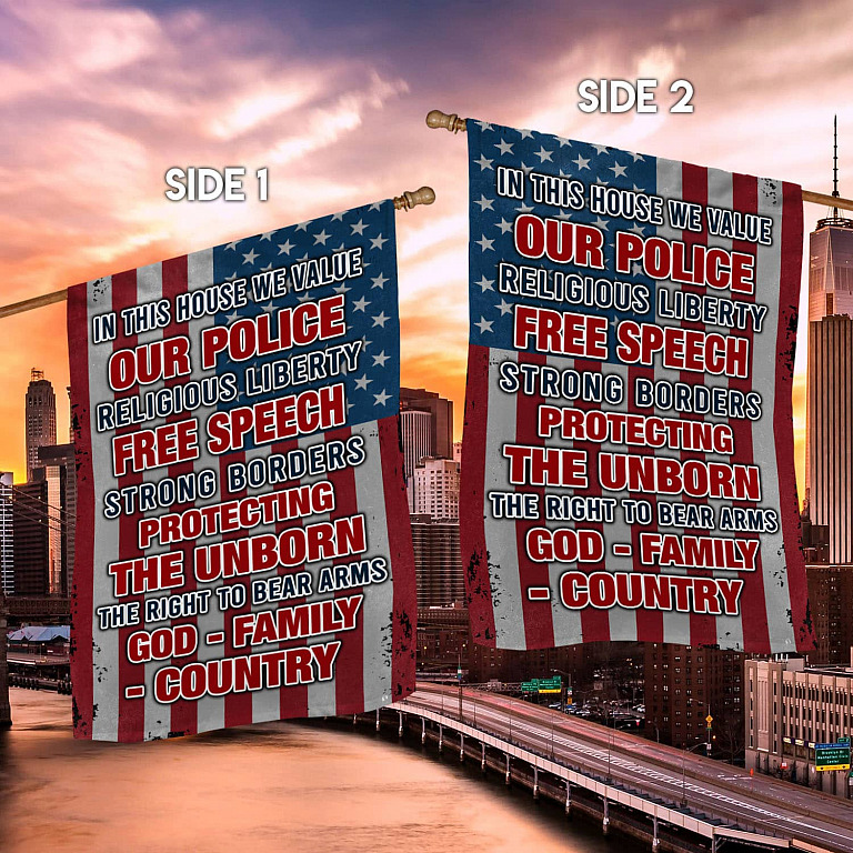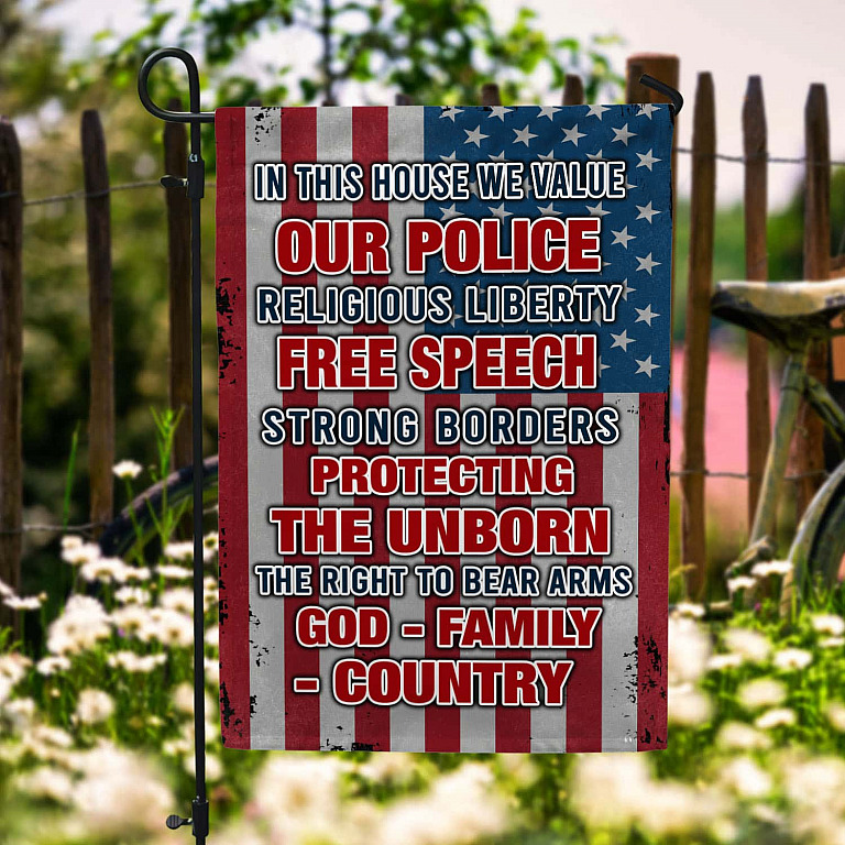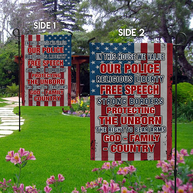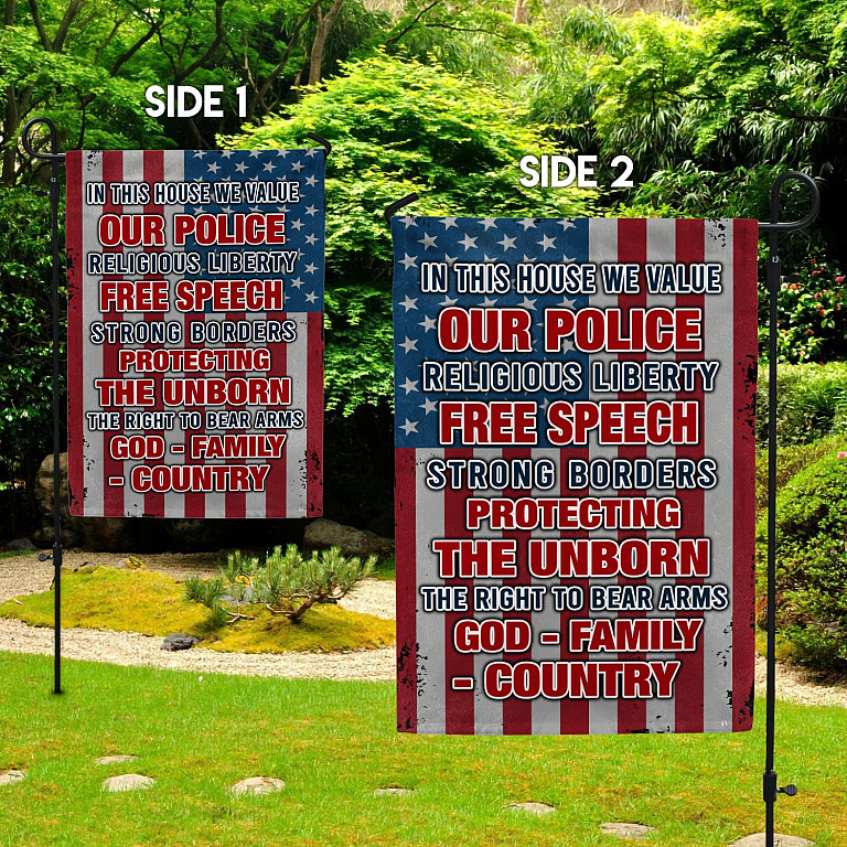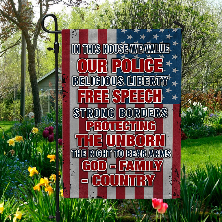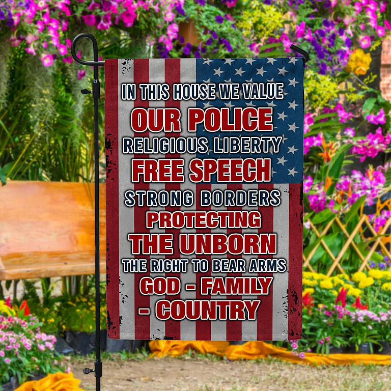 Let’s Shop In This House We Value Our Police Religious Liberty Free Speech God Family Country Garden Flag – House Flag!
