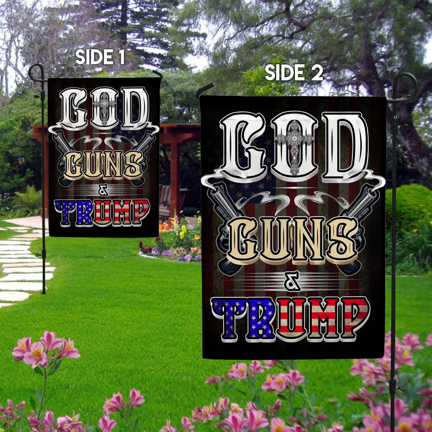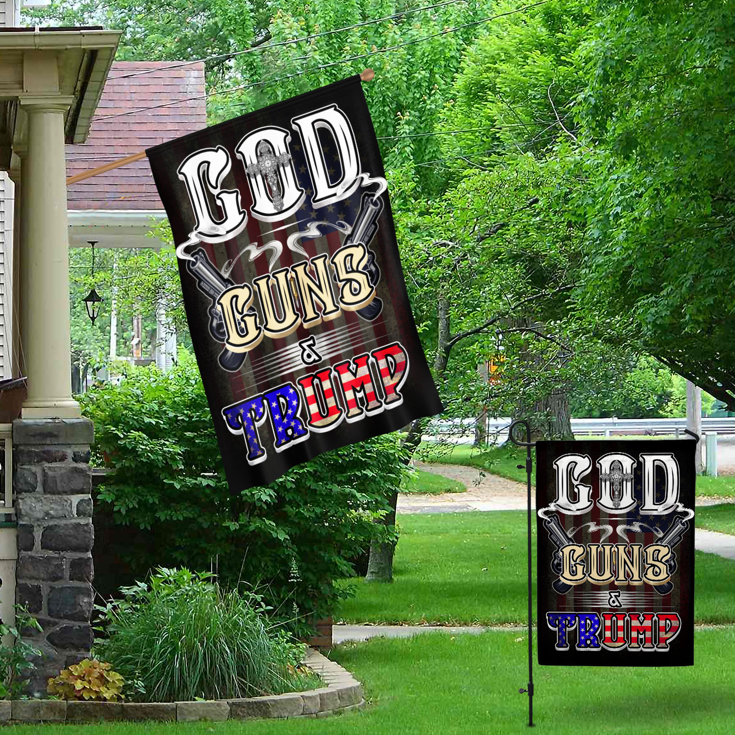 Let’s Shop God Guns and Trump Decorative Garden Flag – House Flag – Pro Trump Flag!