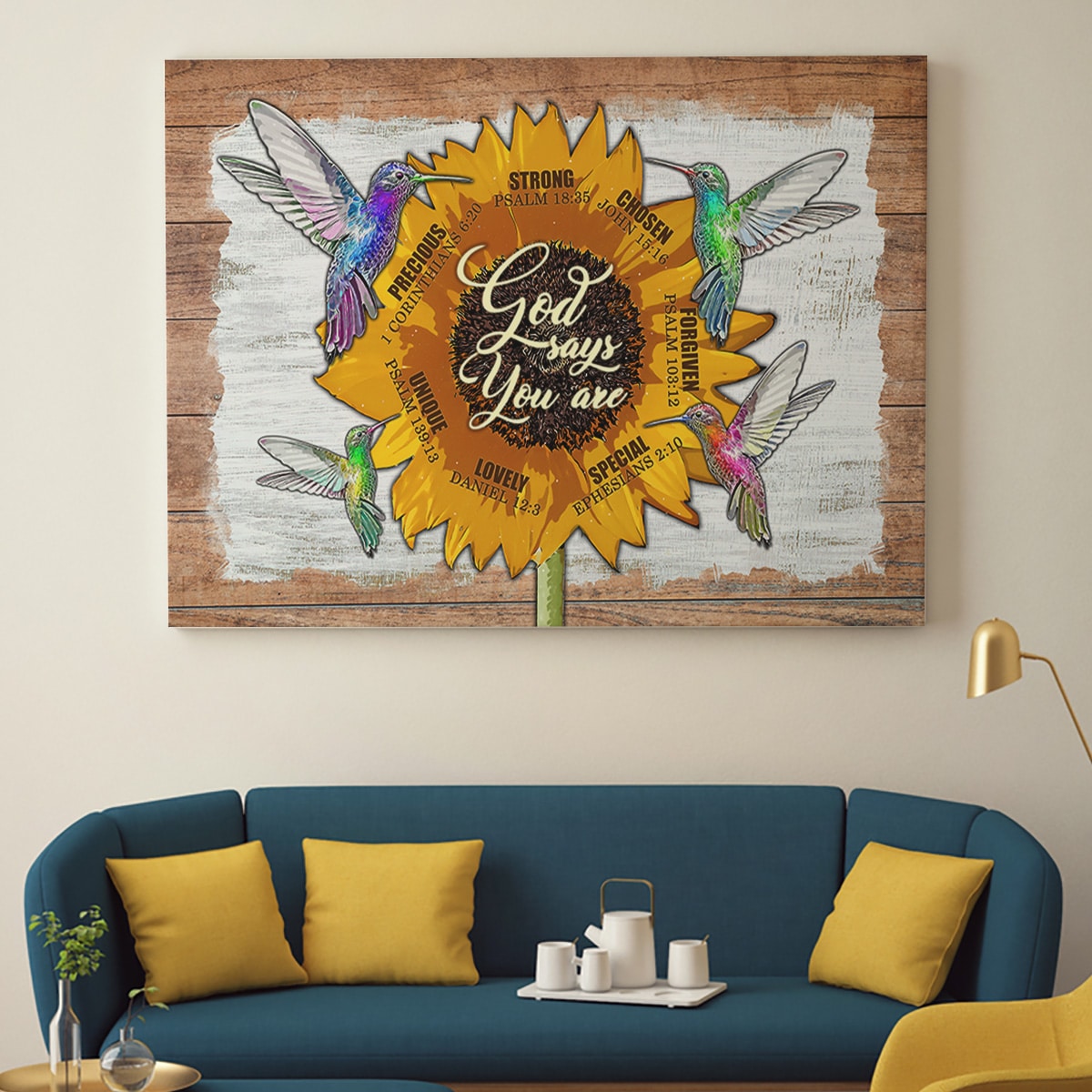 Are you spending too much time to find creative merchandise for you or suitable & special gifts for your mommy, your daddy, your son, your daughter, your children, your friends or someone you love? The struggle is over because we have various good Says You Are Canvas, Hummingbird and Flowers God Say You Are Canvas, Sunflower God Says You Are Canvas, God Says You Are Canvas Wall Art which will make perfect presents for your beloveds. In order to make your present stand out, we have created lots of unique and awesome customized photo gifts & personalized designs.