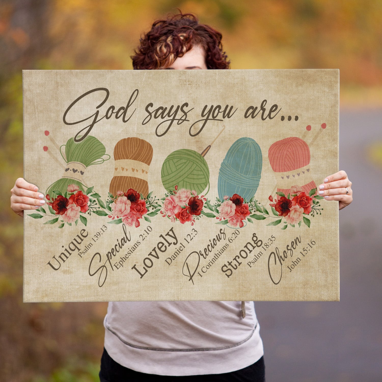 Let’s Shop God Says You Are Unique Special Lovely Precious Strong Chosen Crochet Knitting Framed Canvas Unframed Poster!