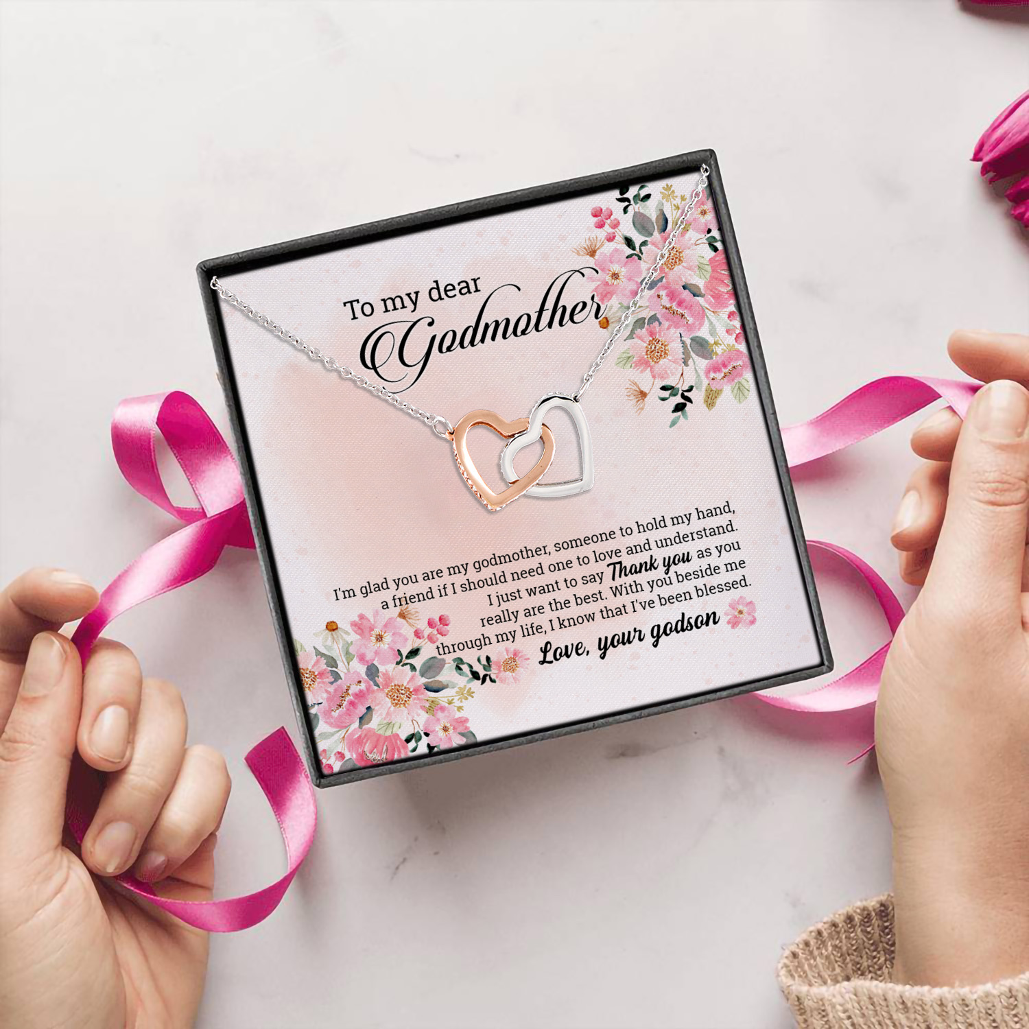 Let’s Shop Godson To My Dear Godmother I’m Glad You Are My Godmother Heartfelt Card Jewelry Interlocking Hearts Necklace!