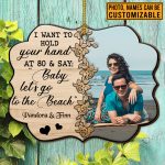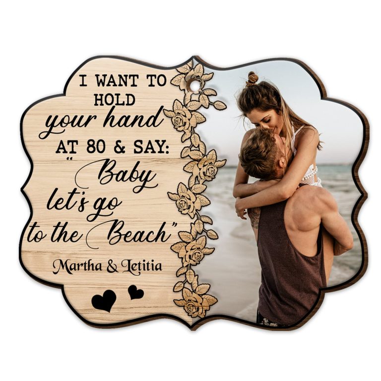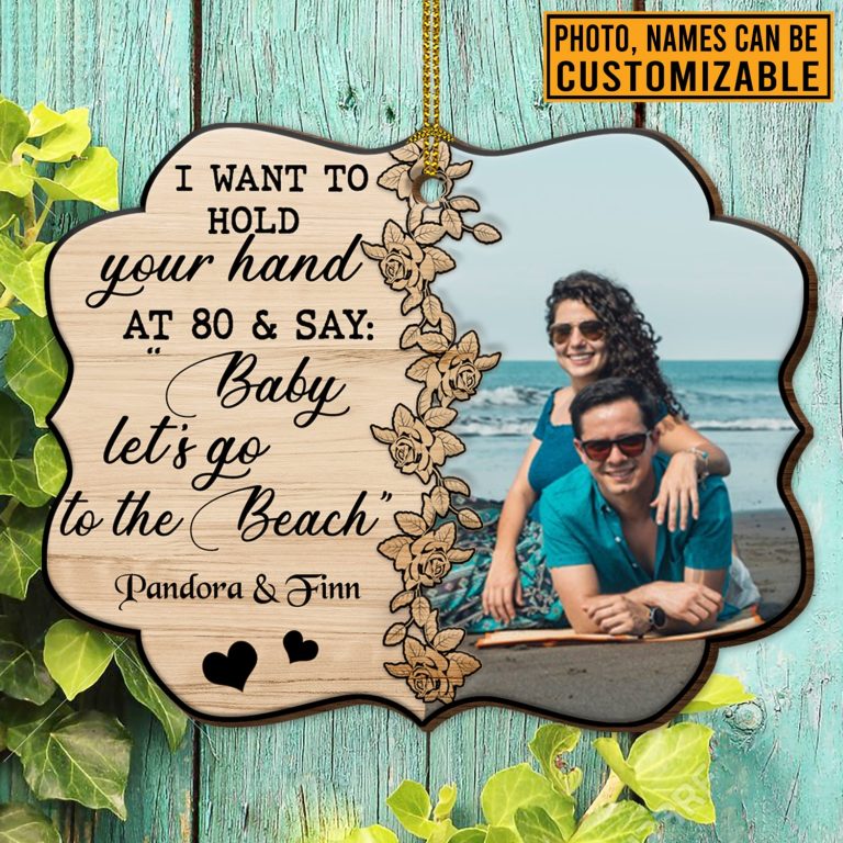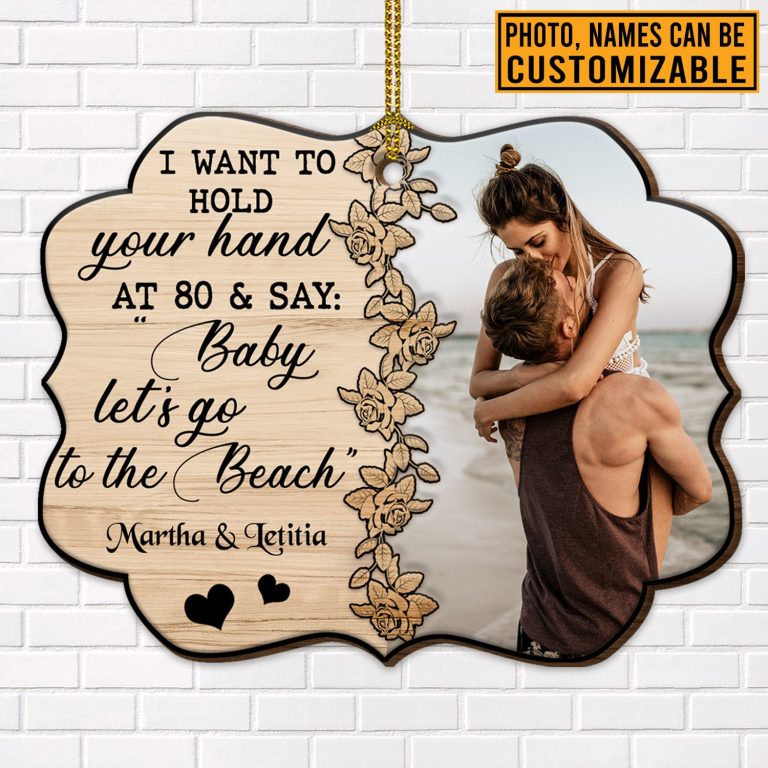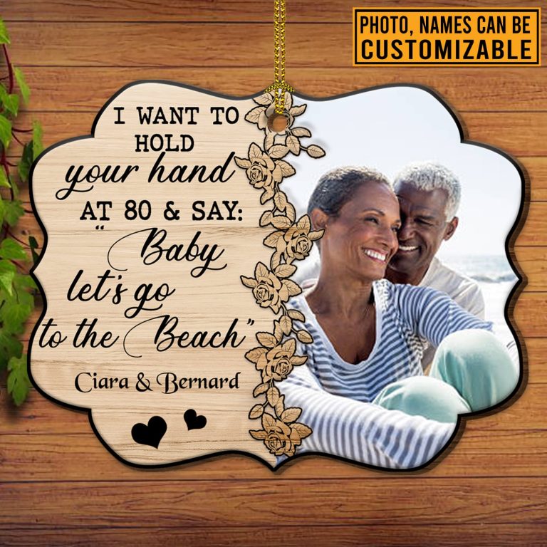 Let’s Shop I Want To Hold Your Hand At 80 and Say Baby Let’s Go To The Beach Personalized Photo Custom Shaped Ornament!