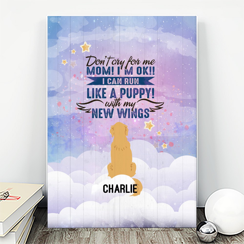 Shop Personalized Don’t Cry for Me Mom I’m Ok I Can Fly with New Wings Golden Retriever Framed Canvas – Unframed Poster.