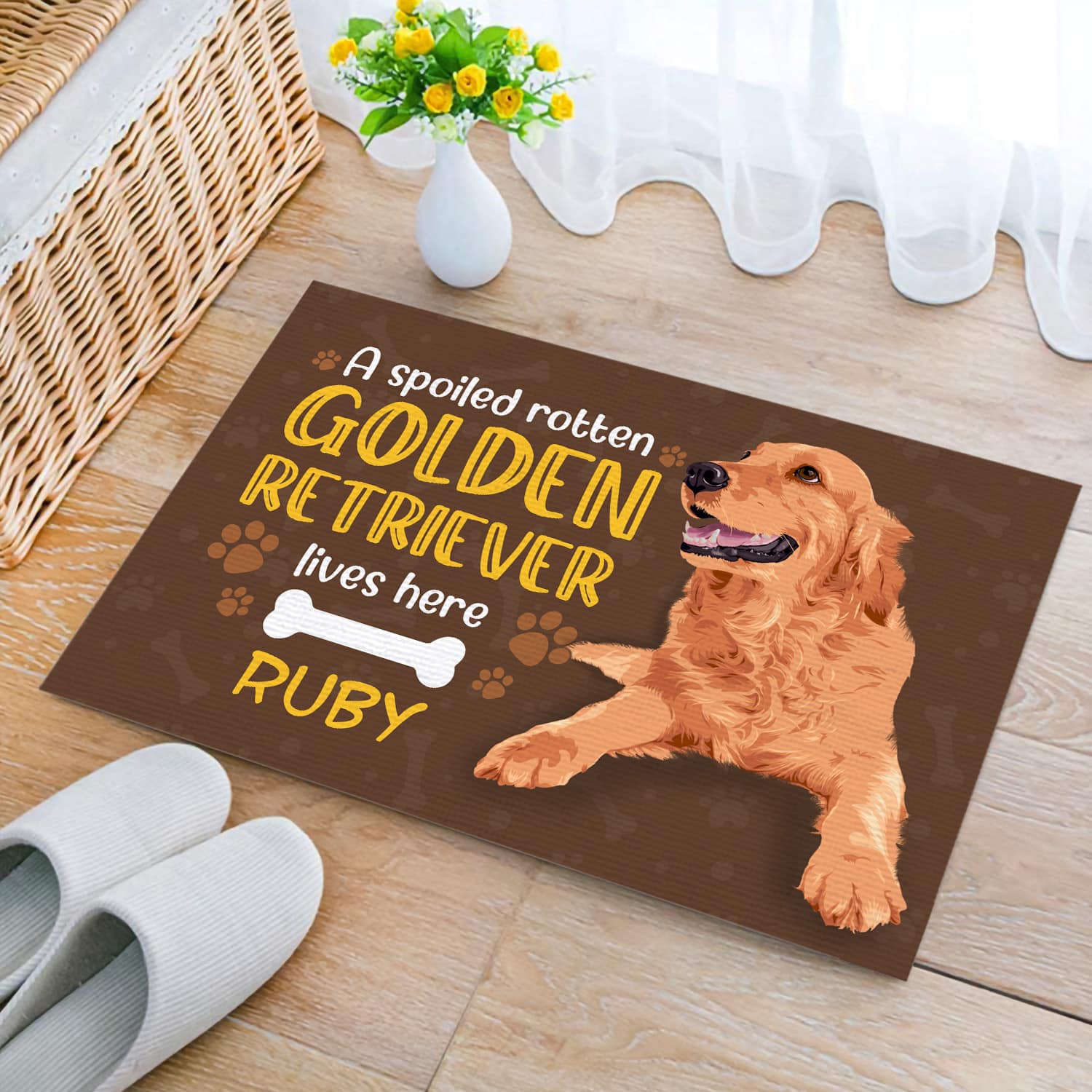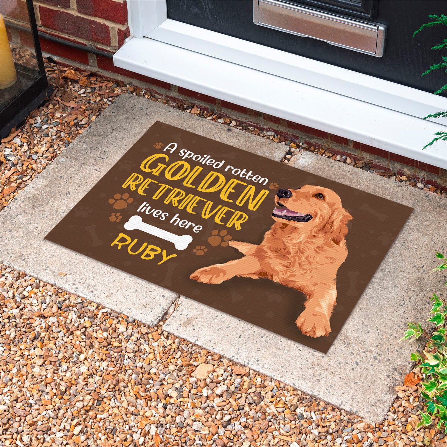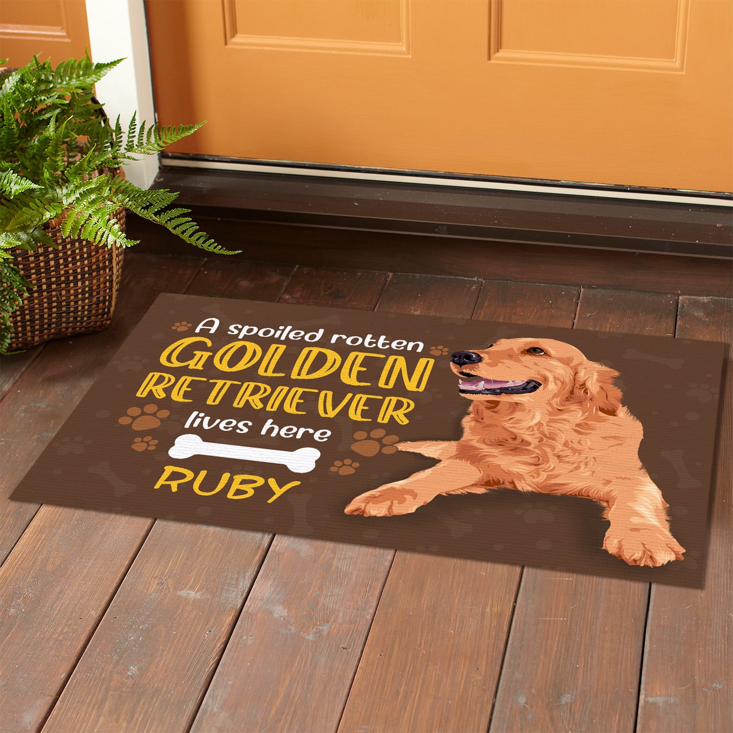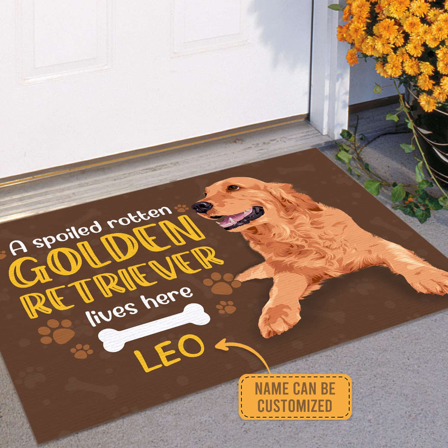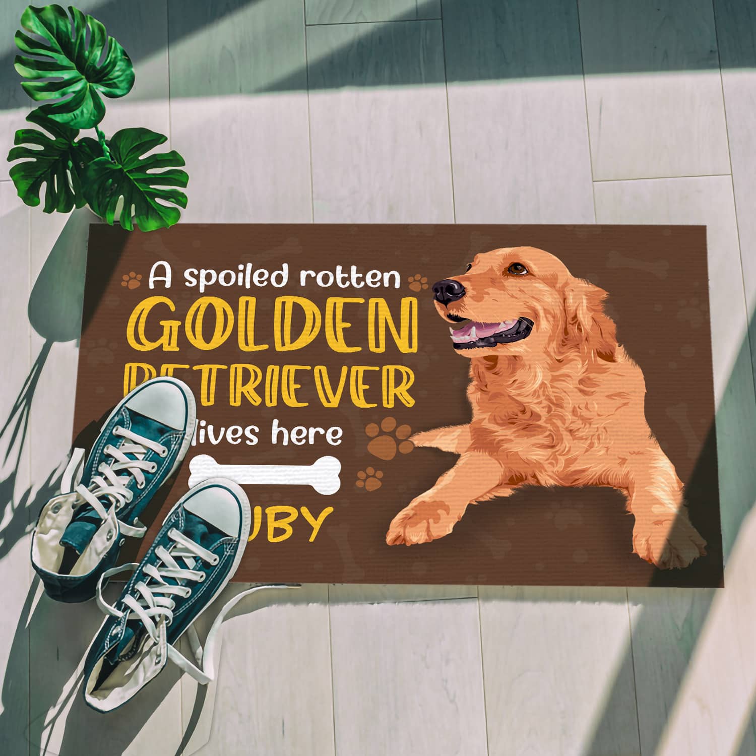 Let’s Shop Personalized Custom Name a Spoiled Rotten Golden Retriever Lives Here Indoor Outdoor Doormat!