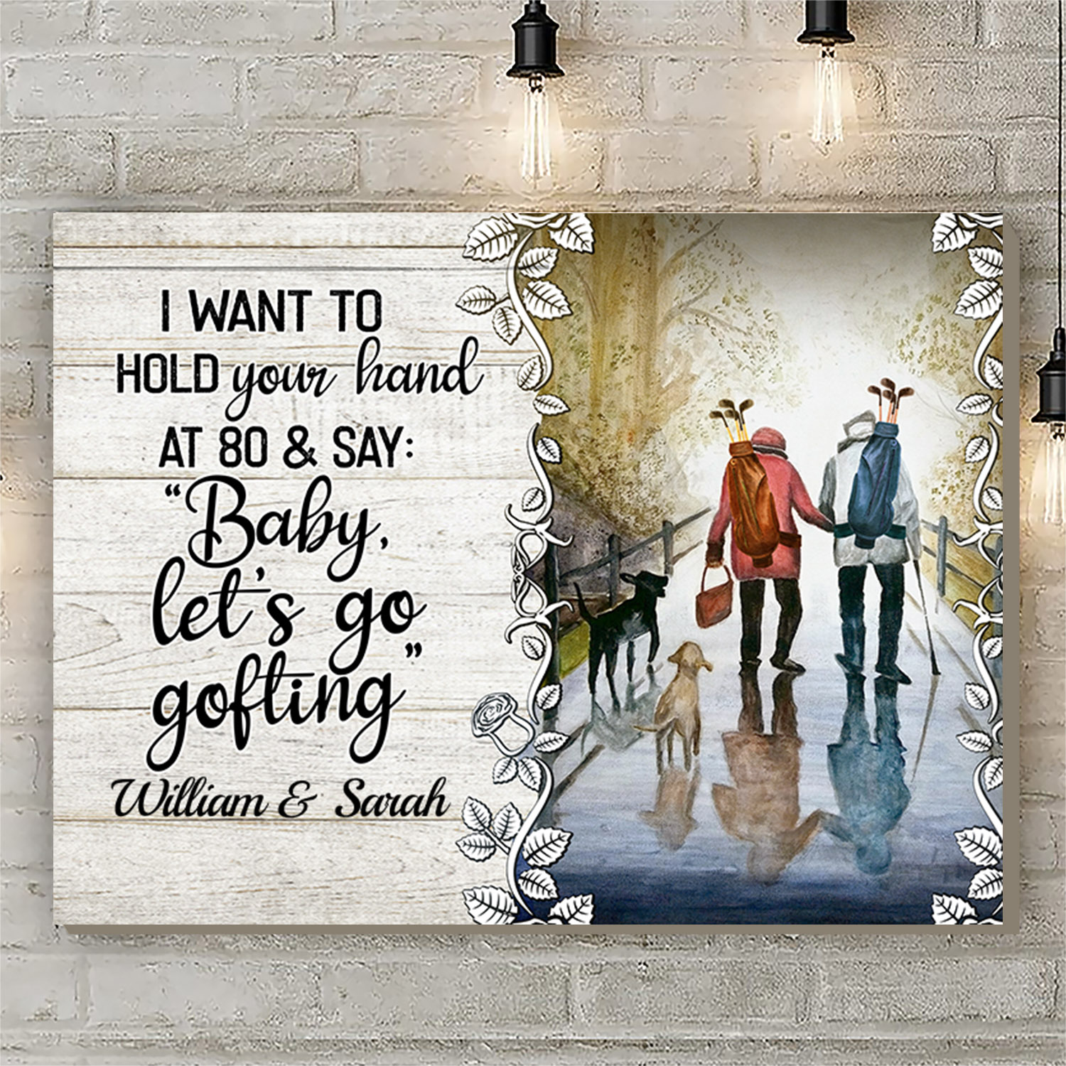 Let’s Shop Personalized I Want To Hold Your Hand At 80 And Say Baby Let’s Go Golfing Canvas Prints – Unframed Poster!
