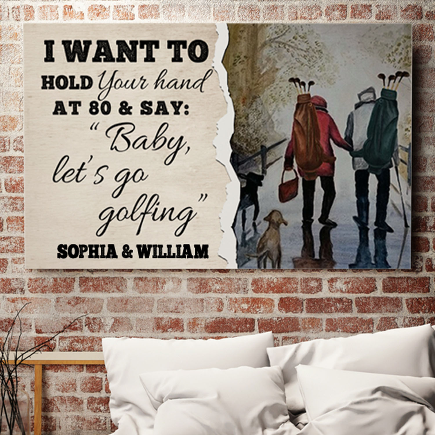 Let’s Shop Personalized Old Couple Golfing I Want To Hold Your Hand Baby Let’s Go Golfing Framed Canvas Prints – Unframed Poster!