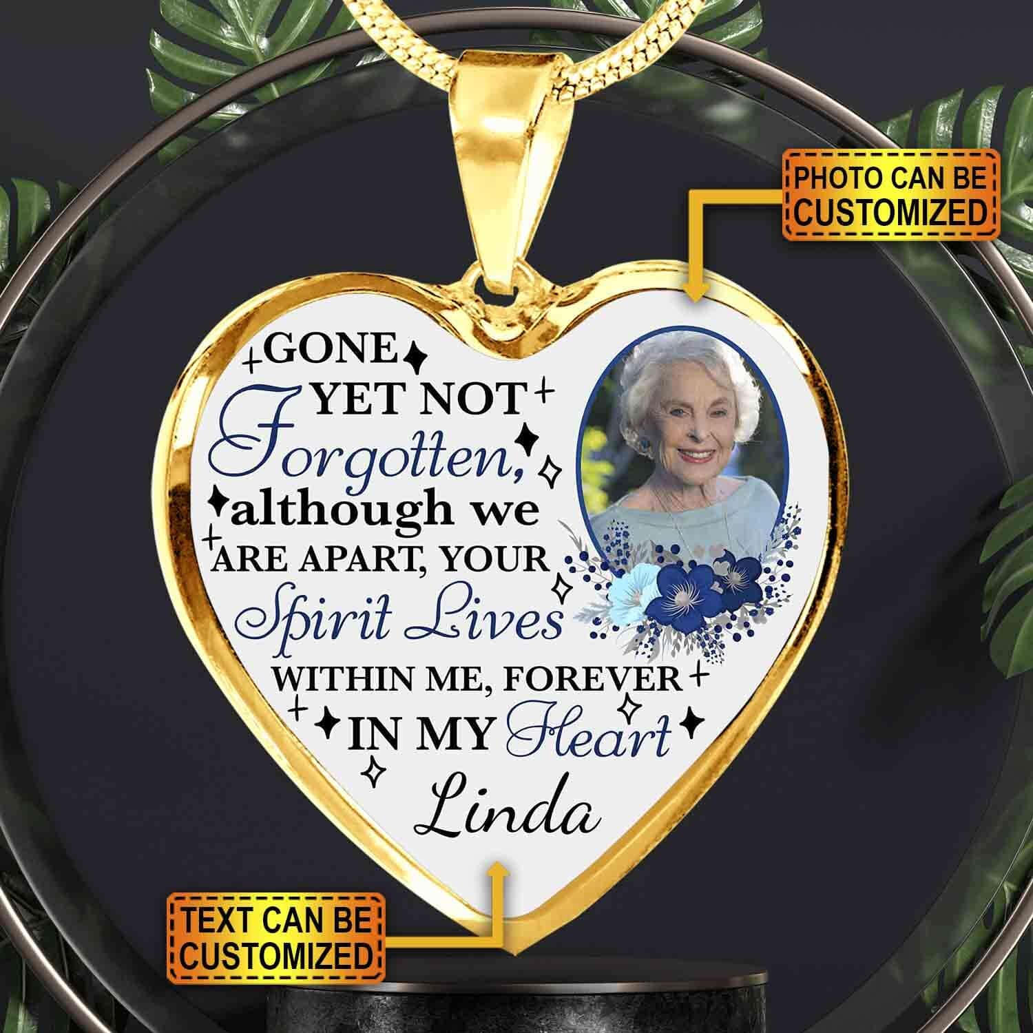 Let’s Shop Personalized Photo Gone Yet Not Forgotten Although We Are Apart Heart Pendant Necklace!