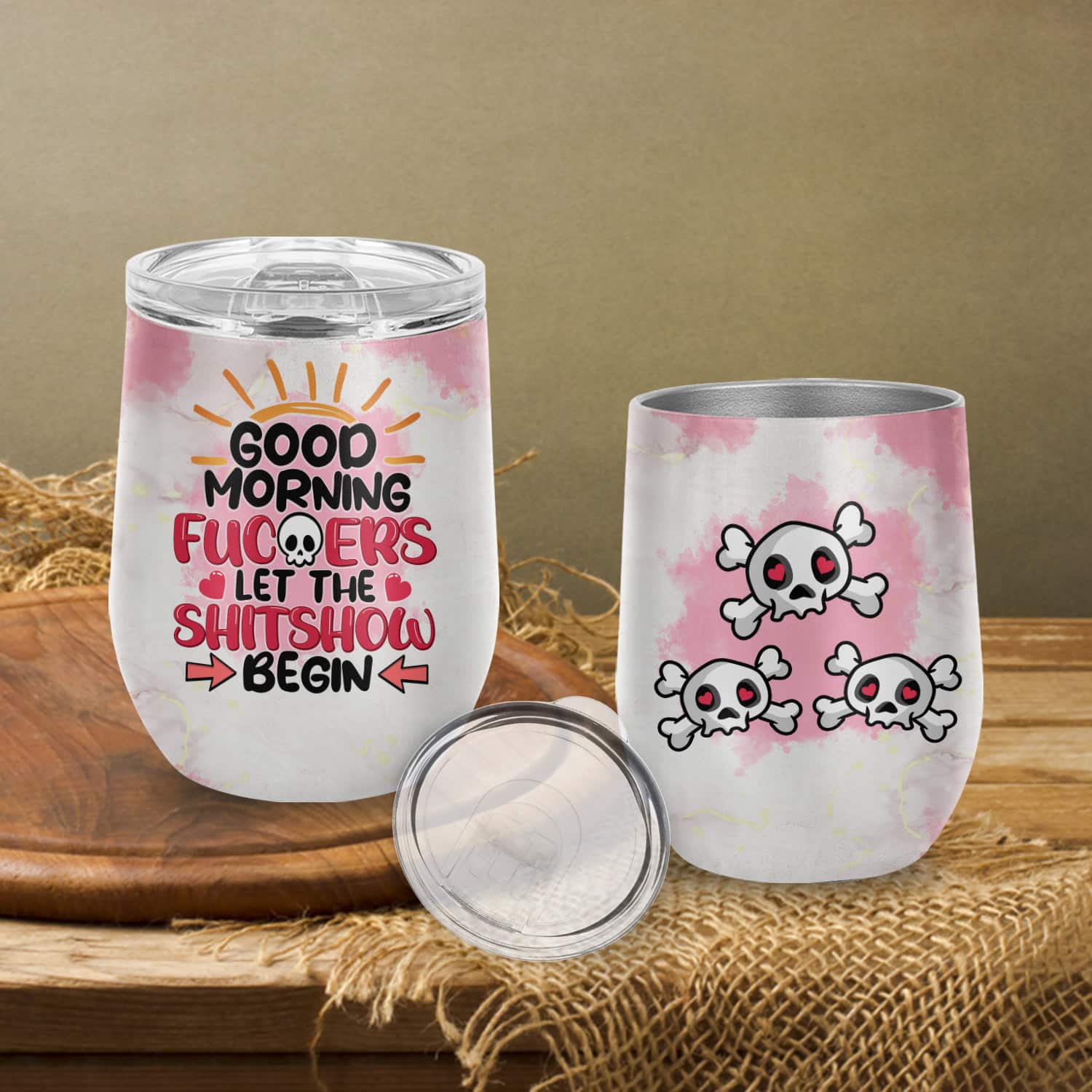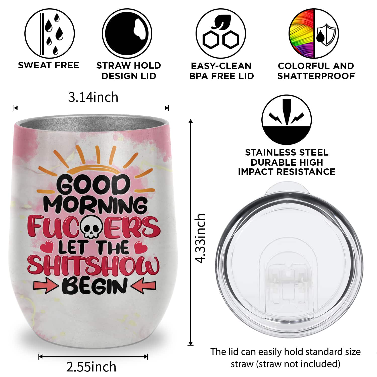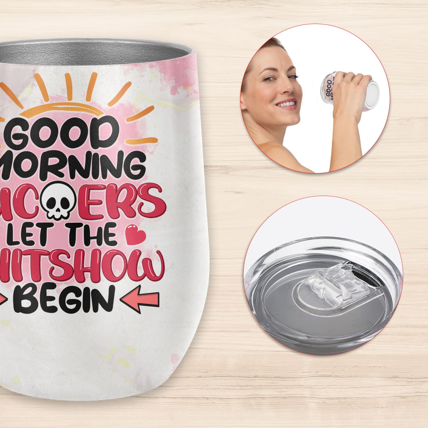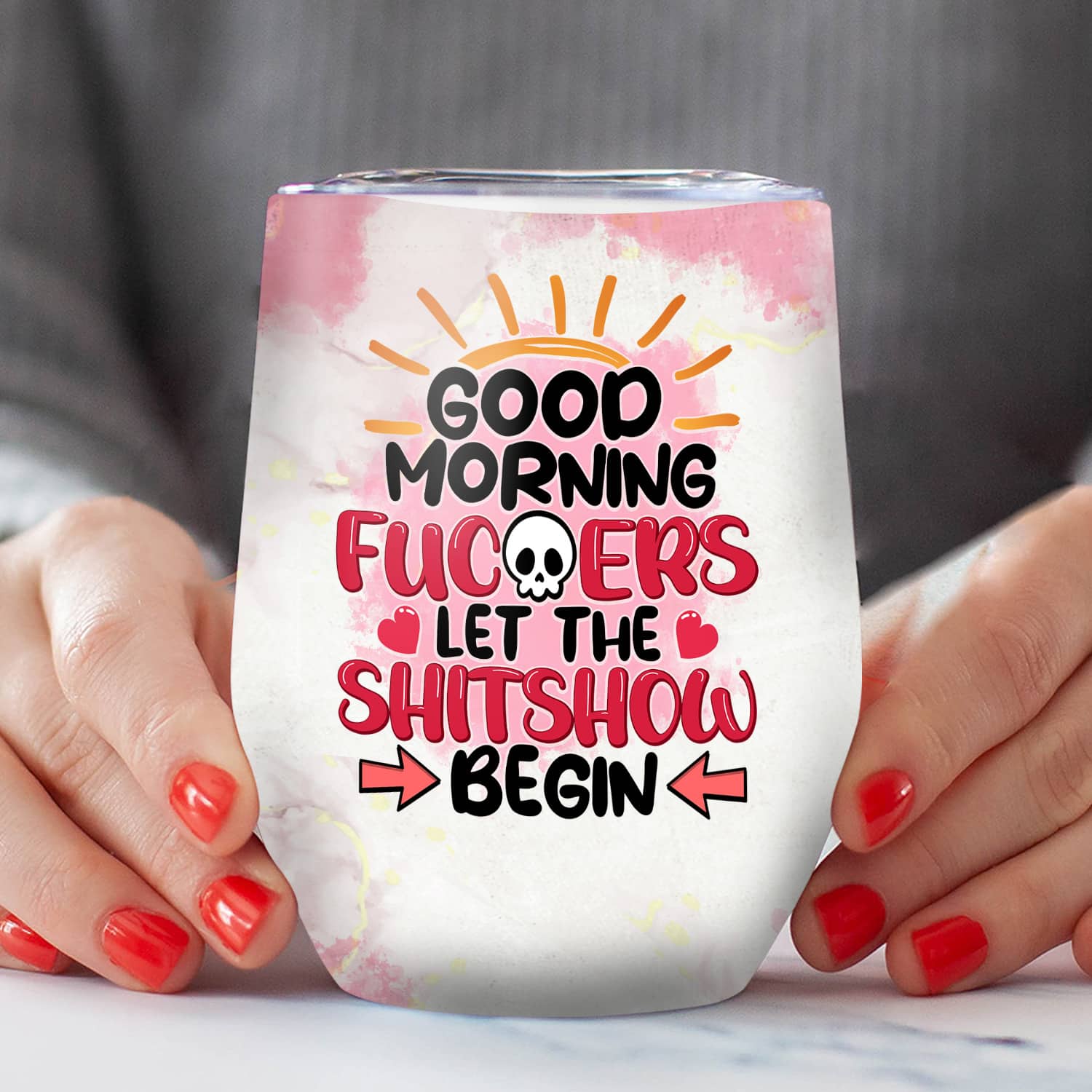 Let’s Shop Good Morning Fuckers Let The Shitshow Begin Insulated Wine Tumbler with Lid – Funny Birthday Christmas Gifts for Friends BFF Women Men!