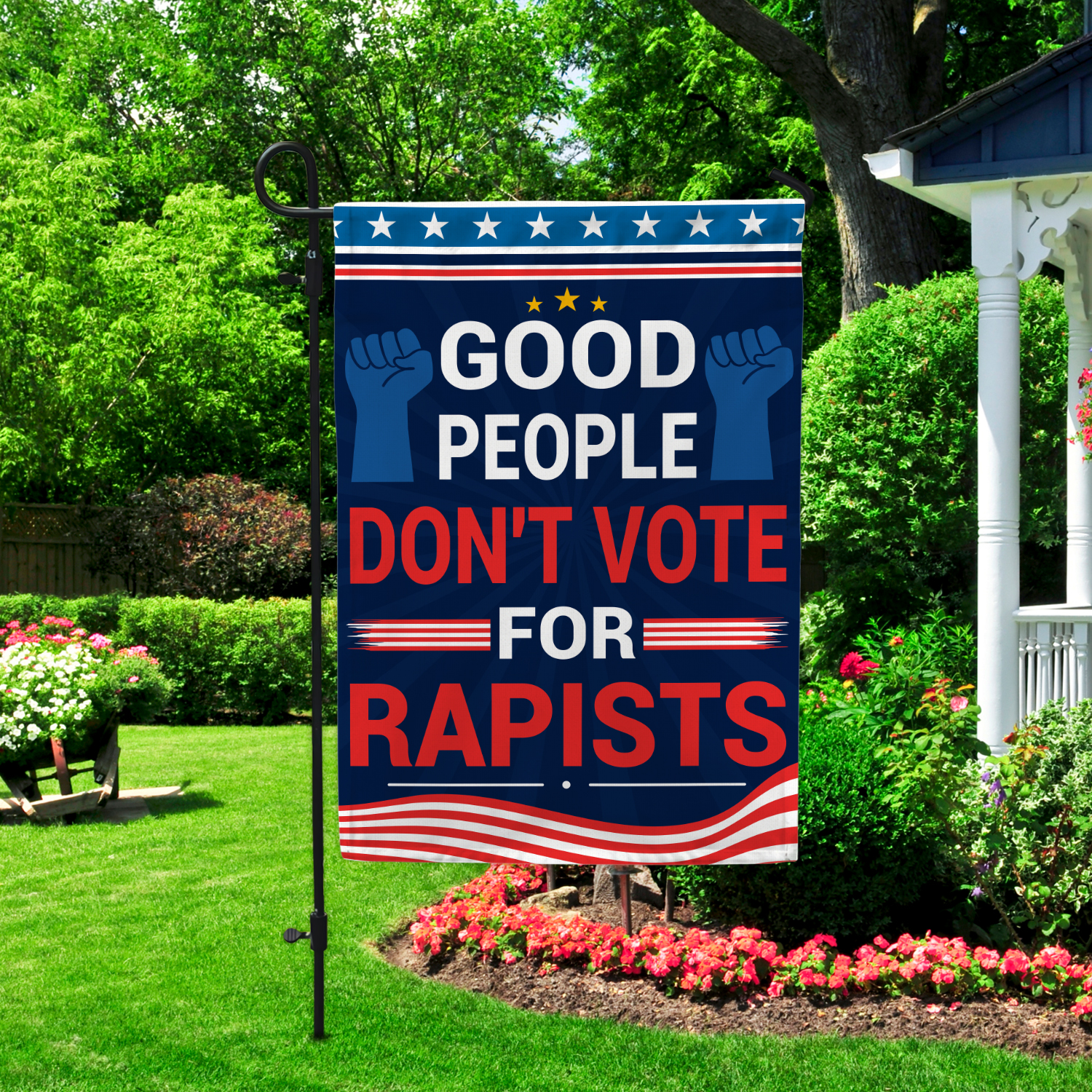 Let’s Shop Good People Don’t Vote For Rapists Political Outdoor House Flag – Home Garden Flag!