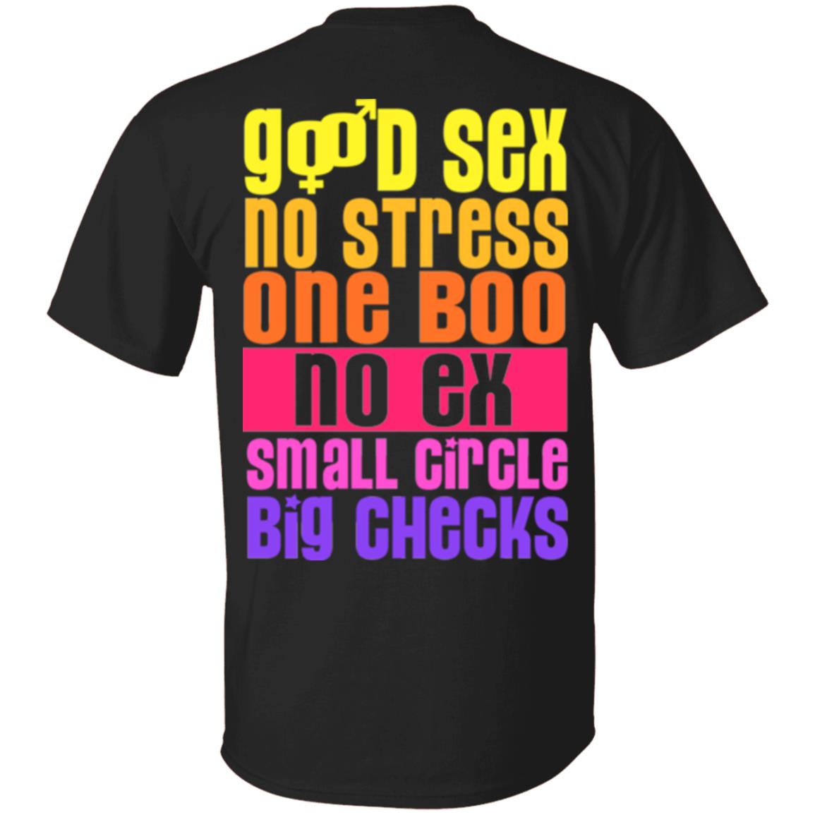 Good Sex No Stress One Boo No Ex Small Circle Big Checks Print on Back Only – Plain Front T-Shirt