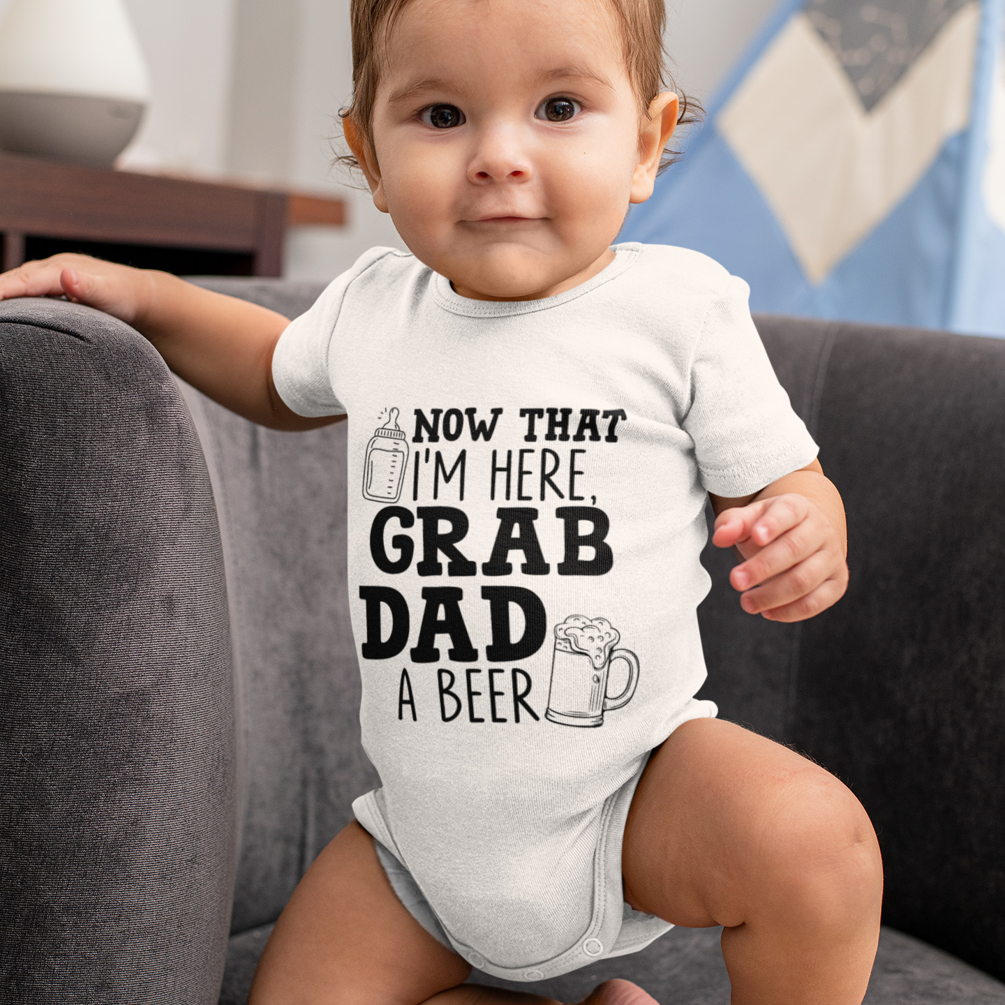 Let’s Shop Father’s Day Now That I’m Here Grab Dad a Beer Funny Baby Onesie – Baby Infant Bodysuit!