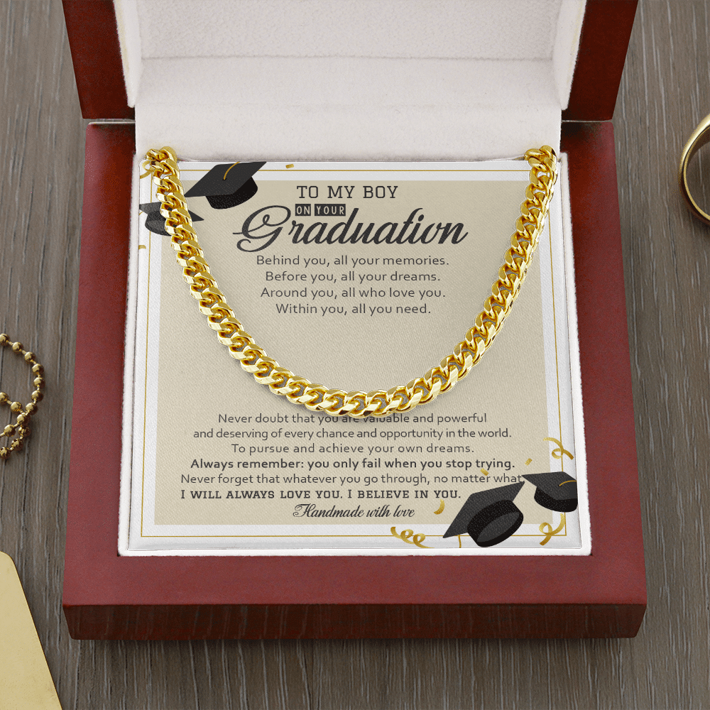Let’s Shop To My Boy On Your Graduation Behind You All Your Memories Before You All Your Dreams Cuban Link Chain Necklace!