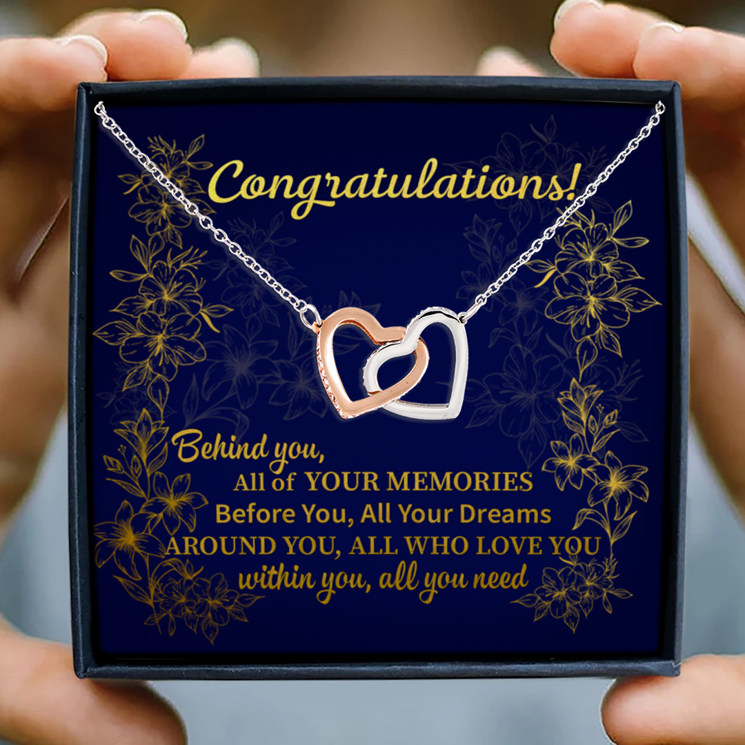 Let’s Shop Congratulations Graduation Hat Behind You All Of Your Memories Interlocking Hearts Necklace – Graduation Gift!