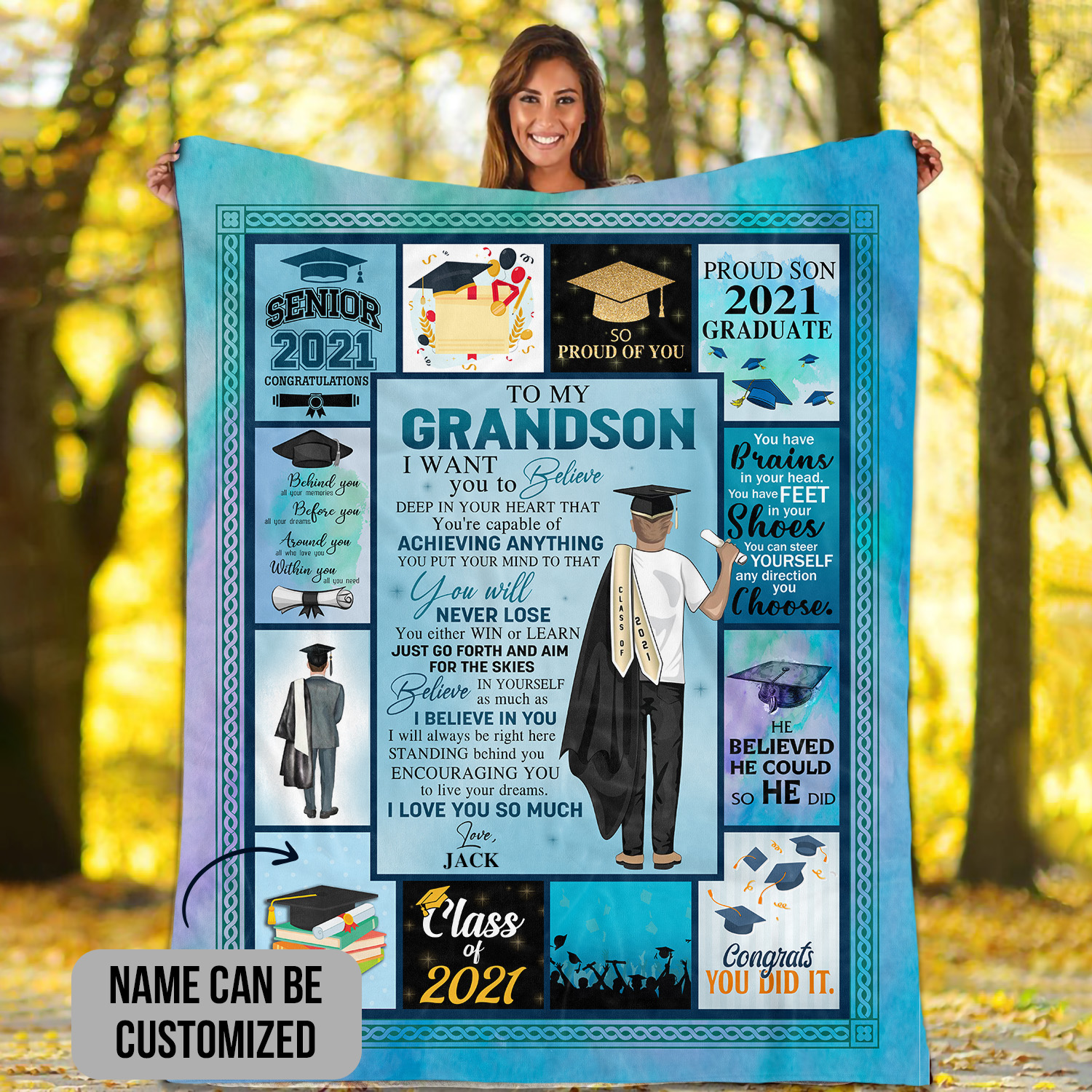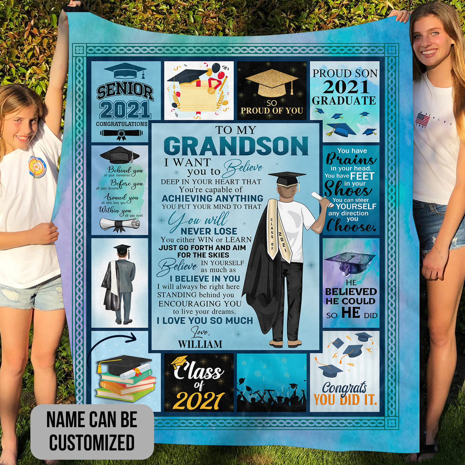 At CubeBik, besides blankets, we also offer tees, hoodies, sweaters, raglans, tanks, wall arts, canvases, posters, engraved jewelry, personalized necklaces, printed face masks, throw pillows, tote bags, hats, accessories and more on our website, so do not miss our other Graduation Blanket Grandson 2021, Graduation Gifts for Grandson, Custom Graduation Blanket for Grandson, Senior Class of 2021 Blanket, Grandson Graduation Gift, Grandson Graduation Gifts from Grandma, Personalized Graduation Gifts for Grandson, Graduation Gift to Grandson from Nana, To My Grandson Personalized Graduation Gifts, Personalized Graduation Gifts for Him, Personalized Graduation Blanket, Personalized Senior 2021 Blanket related merchandise. Moreover, all the products are made-to-order and one of a kind custom designs you can’t get elsewhere in normal stores. Let’s discover CubeBik.com now and find your favorite personalized items. We can’t wait to surprise and build beautiful memories with you and your loved ones.