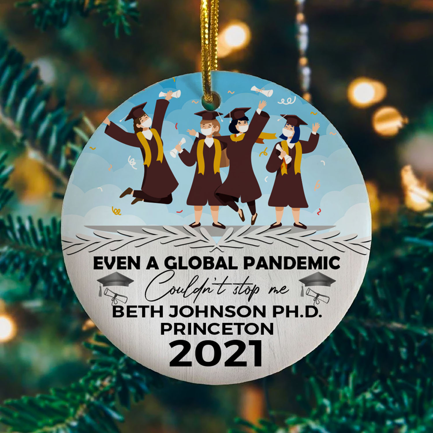 At CubeBik, besides ornaments, we also offer tees, hoodies, sweaters, raglans, tanks, wall arts, canvases, posters, mugs, blankets, engraved jewelry, personalized necklaces, printed face masks, throw pillows, tote bags, hats, accessories and more on our website, so do not miss our other Even a Global Pandemic Couldn’t Stop Me, Pandemic Graduate Gift, Graduation Gifts for Her 2021, Graduation Gifts, Graduation Decorations 2021, Graduated During a Pandemic, Graduation Ornament 2021, Graduation Pandemic Ornament related merchandise. Moreover, all the products are made-to-order and one of a kind custom designs you can’t get elsewhere in normal stores. Let’s discover CubeBik.com now and find your favorite personalized items. We can’t wait to surprise and build beautiful memories with you and your loved ones.