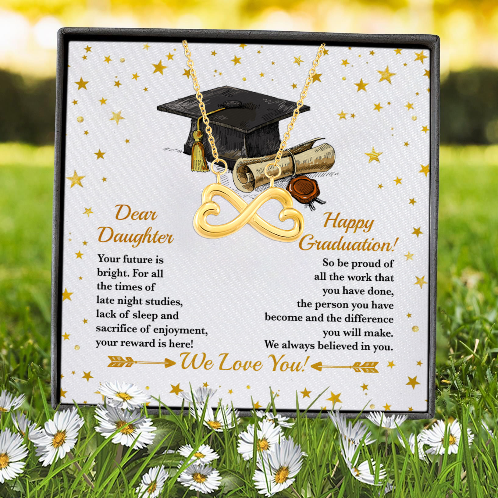 Let’s Shop Dear Daughter Your Future Is Bright Happy Graduation We Always Believed In You Infinity Heart Pendant Necklace!