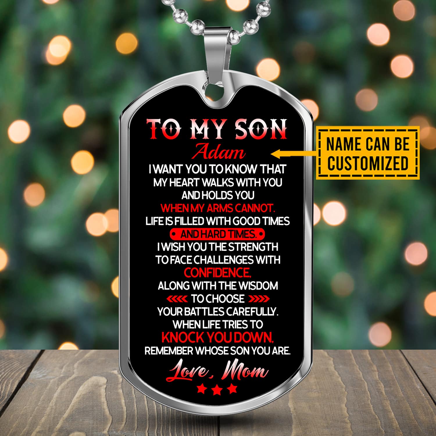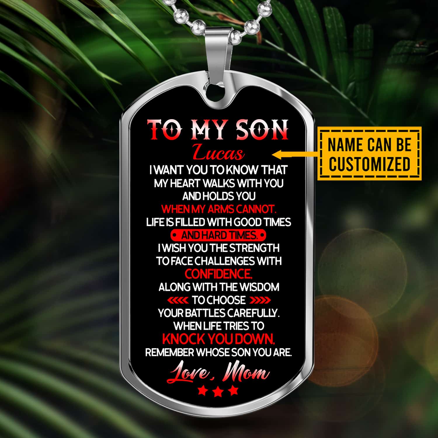 Let’s Shop Personalized to My Son from Mom I Want You to Know That My Heart Walks with You Dog Tag Pendant Necklace!